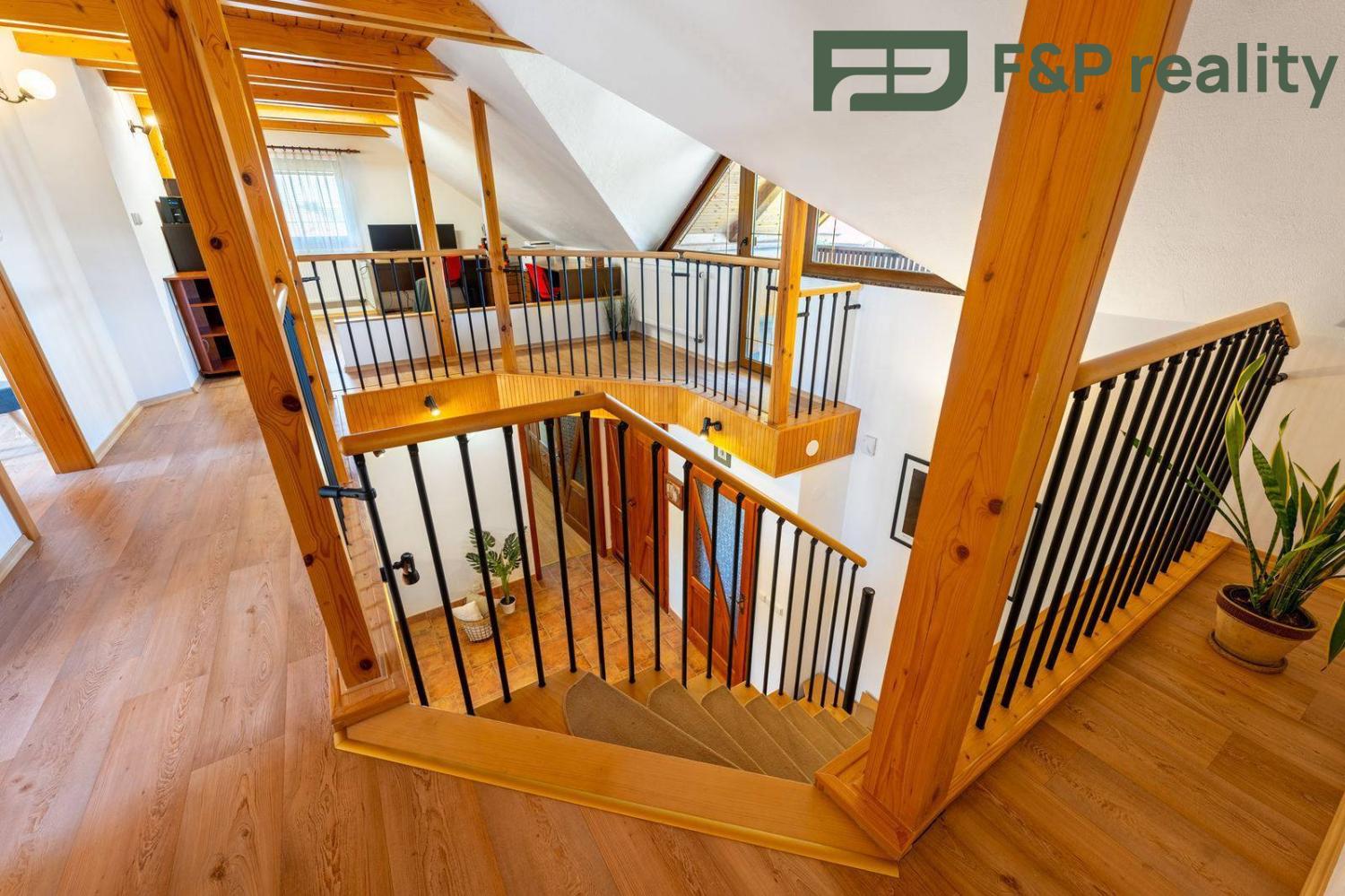 Tento rodinný dům o dispozici 4+kk je zasazen do klidné příměstské čtvrti, která nabízí klid, skvělou dostupnost do města a přírodu hned za Vašimi vrátky. Zahrada si Vás získá svým uspořádáním, které tvoří záhony s různými druhy květin, jezírko, altán s krbem a zázemím pro Vaše grilování a posezení a zahradní domek. Celá zahrada je vybavena automatickou závlahou, což Vám udržuje zahradu v krásném stavu a ušetří Vám čas. Zadní část zahrady Vám nabízí prostor pro Vaši realizaci. Je zde dostatek prostoru například pro Vaši zahrádku či jiný druh využití. Váš výhled na sousedící louku a les Vám umožňují pozemky, které dle územního plánu nejsou určeny k výstavbě.