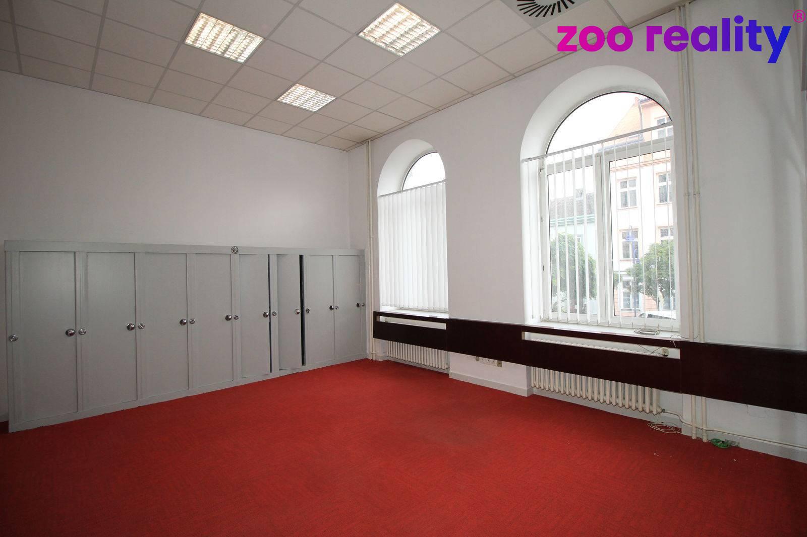 Pronájem kanceláře, obchodního prostoru, celková plocha je 73 m2, Klášterská 140, Jindřichův Hradec. Nabízený prostor se nachází ve zvýšeném přízemí domu na hlavní třídě Jindřichova Hradce v reprezentativní budově banky, vedle Městského úřadu. Jednotlivé místnosti mají plochu 30 m2, 12 m2, 30 m2.