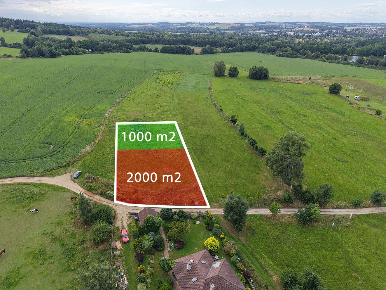 Z celkové výměry je 2 000 m2 určeno k výstavbě rodinných domů, zbývající část 1 000 m lze využít jako prostornou zahradu, sad nebo zázemí pro odpočinek.