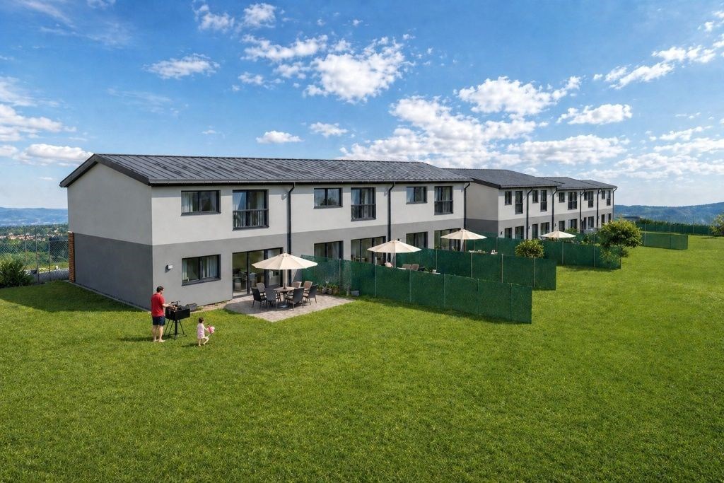 Inzerovaná cena domů je konečná, vnitřky budou předány kompletně dokončené, vše po kolaudaci. Zahrada bude oplocená, zarovnaná, na terasu pouze příprava. Předpokládaný termín dokončení této I etapy je podzim 2027 a předání klientům jaro 2028.