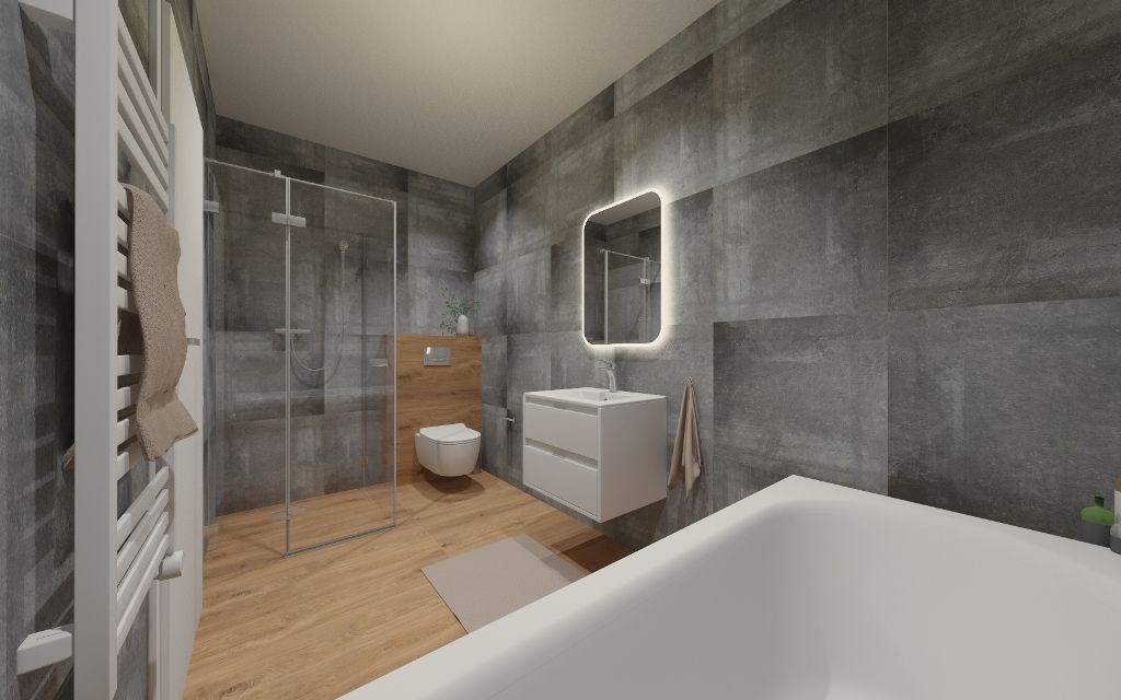 Pro klienty je připraven katalog standardů, jako zařizovacích předmětů, vnitřních dveří a zárubní, včetně barevných variant vinylových podlah.