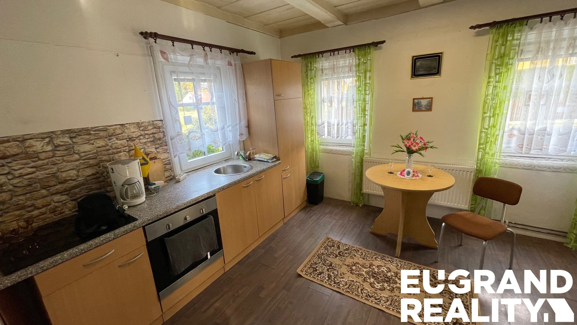 V přízemí se nachází vstupní veranda, kuchyň, obývací pokoj, chodba se schodištěm, koupelna s WC a kotelna.