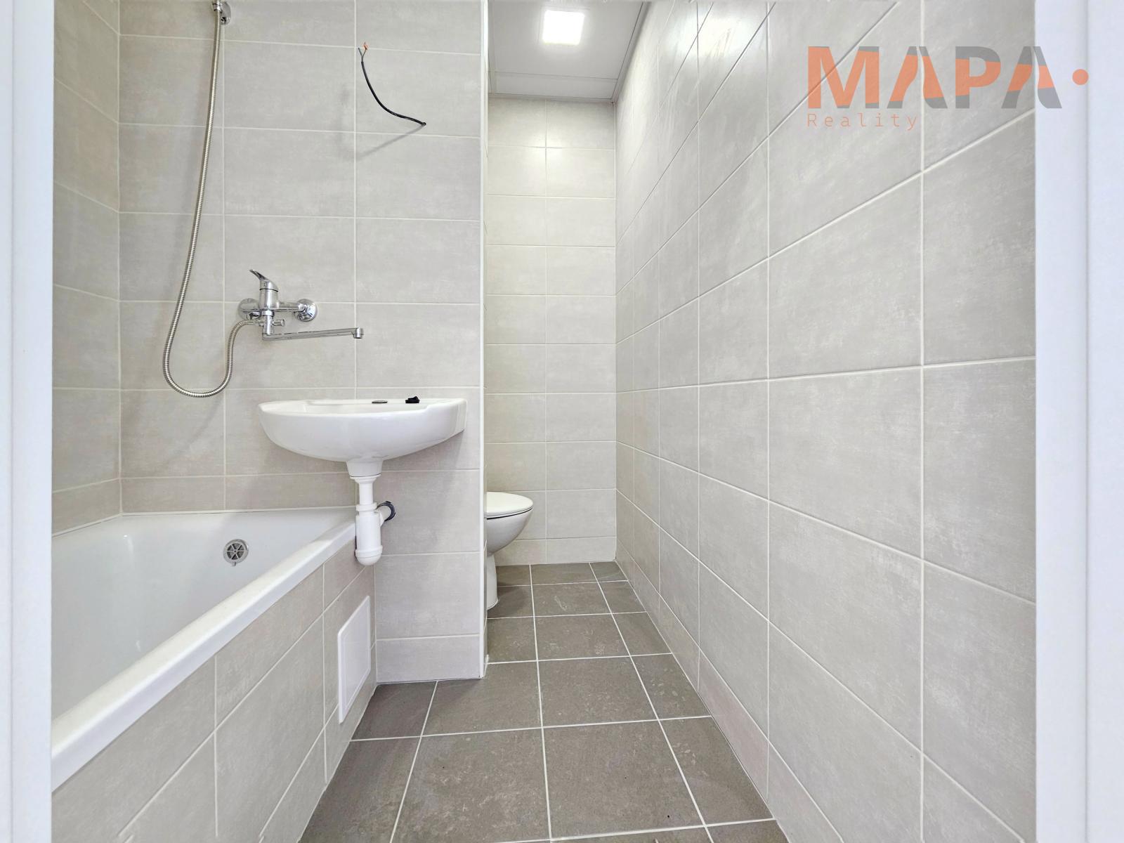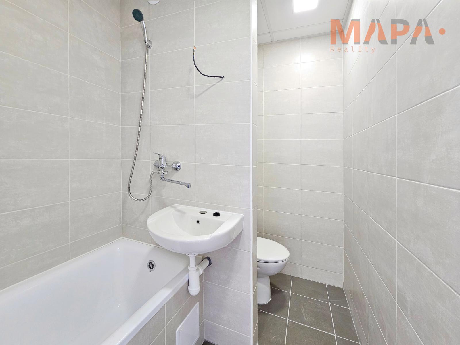 Součástí tohoto hezkého bytu po rekonstrukci je zděná koupelna s vanou, WC a kuchyňská linka.