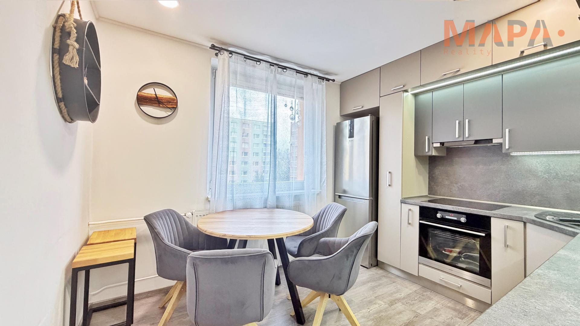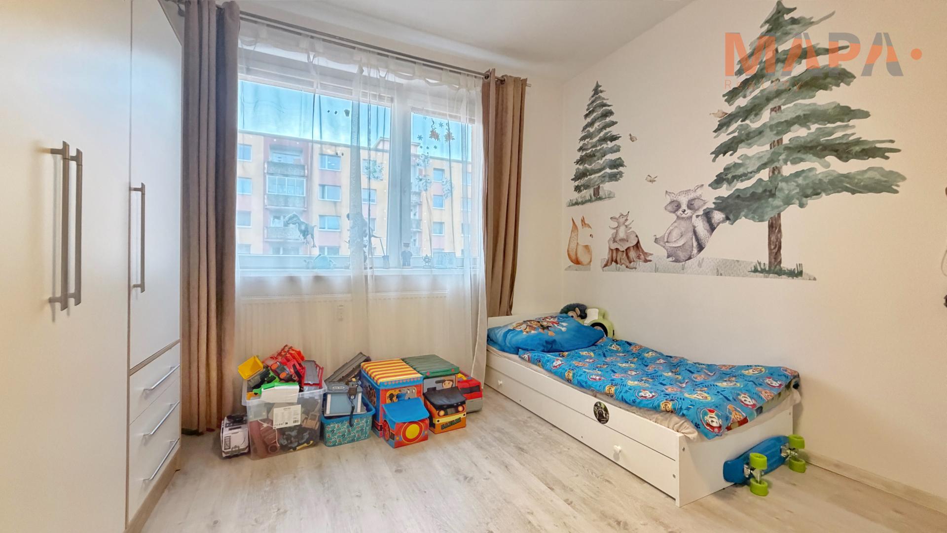 Byt prošel velmi zdařilou rekonstrukcí, při níž byl kladen důraz na kvalitu použitých materiálů i moderní design. Dispozice nabízí prostorný obývací pokoj, dětský pokoj, ložnici se zasklenou lodžií, kuchyň s dostatkem úložného prostoru, koupelnu s vanou a sprchovou zástěnou a samostatné WC. Díky promyšlenému řešení působí byt vzdušně, útulně a je připraven k okamžitému nastěhování.
