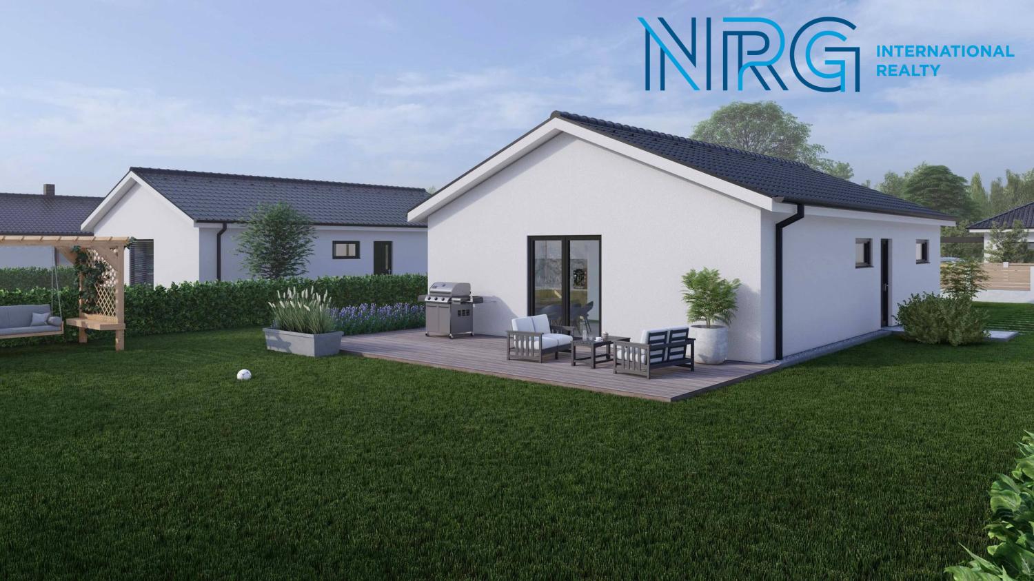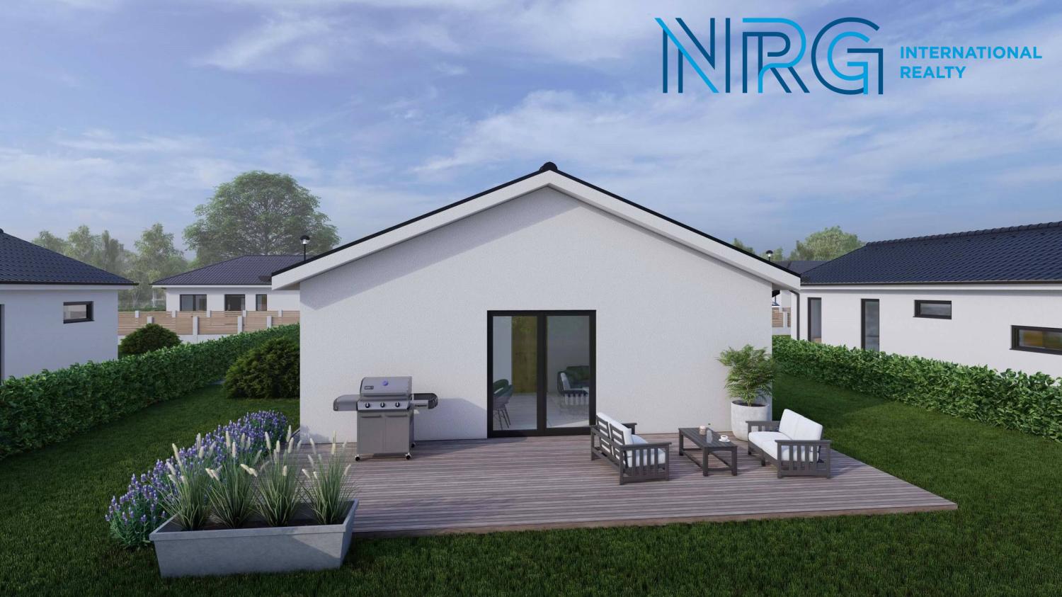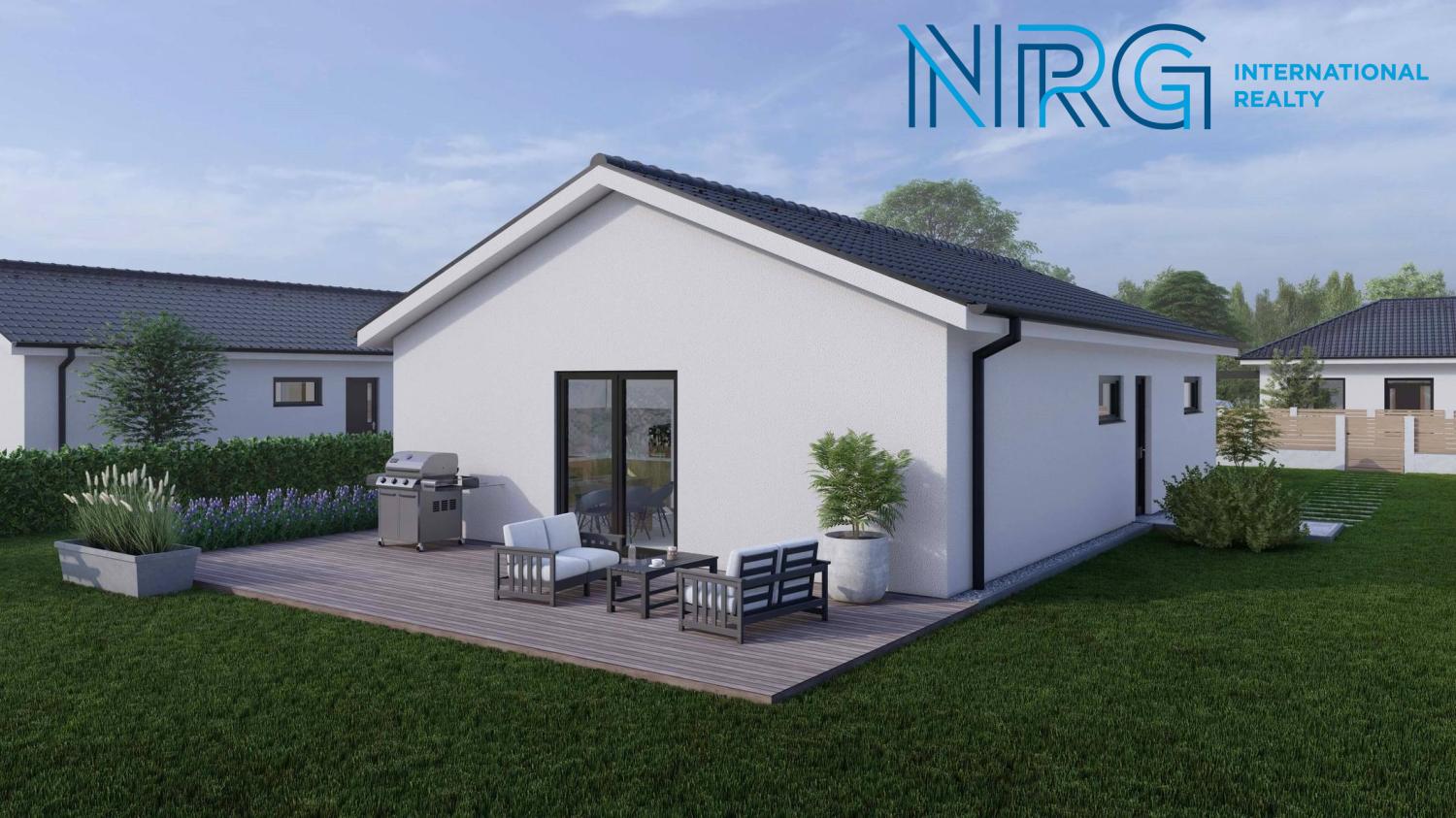 V krásné části mezi městy Chomutov a Jirkov můžete bydlet v novostavbě – bungalovu 4+kk o zastavěné ploše 115 m2 a podlahové ploše 98 m2. Fotografie jsou ilustrační. Dům se nabízí jako "shell and core"
