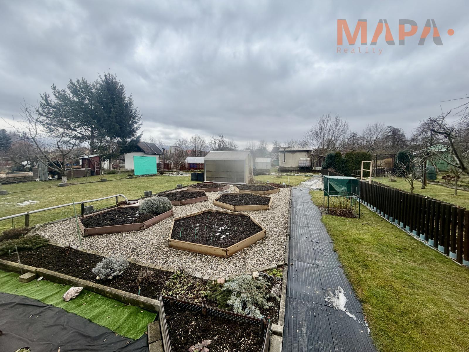 Zahrada je pravidelně udržovaná a připravená k okamžitému užívání. Ideální pro milovníky zahrady, pěstování vlastní zeleniny a ovoce či relaxace v přírodě v klidné rekreační osadě.