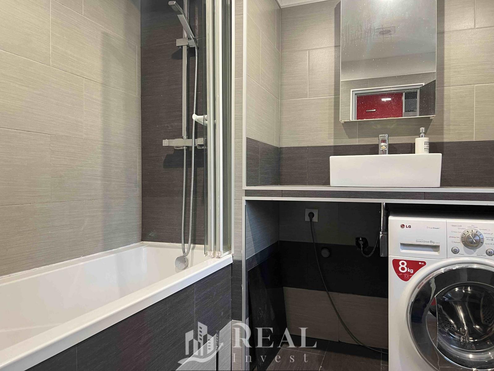 Dispozice bytu nabízí velký obývací pokoj s jídelním koutem, samostatnou ložnici, menší kuchyňský kout vhodný pro běžné vaření a koupelnu s vanou.