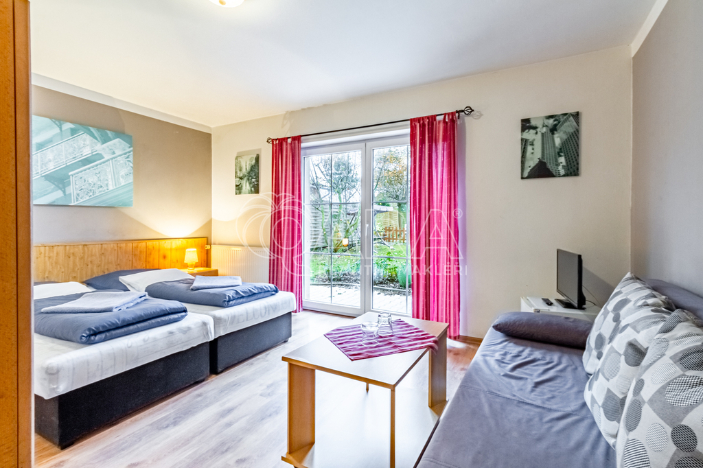 Bungalov 2+kk (63 m²) – samostatná jednotka se zahrádkou, skvělá pro rodiče, děti nebo personál. Samostatný vchod, soukromí, ideální pro vícegenerační bydlení nebo zaměstnance.