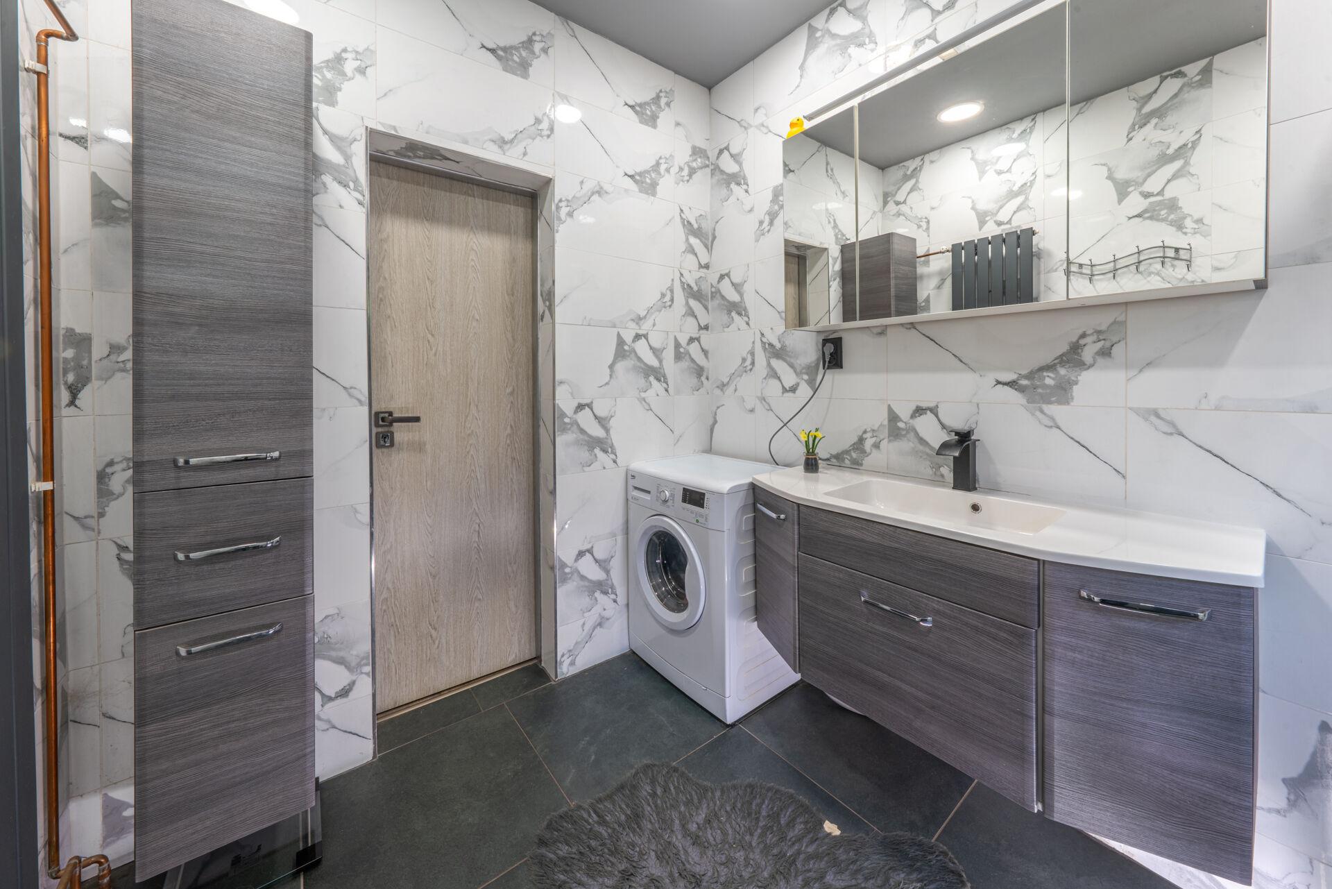 Dům nabízí v přízemí dispozici 4+kk o výměře cca 110 m² – tedy tři samostatné pokoje a obývací prostor propojený s kuchyní, který tvoří přirozené centrum domova. Součástí je také zakrytá veranda s posezením, navazující na zahradu a poskytující příjemné místo pro odpočinek.