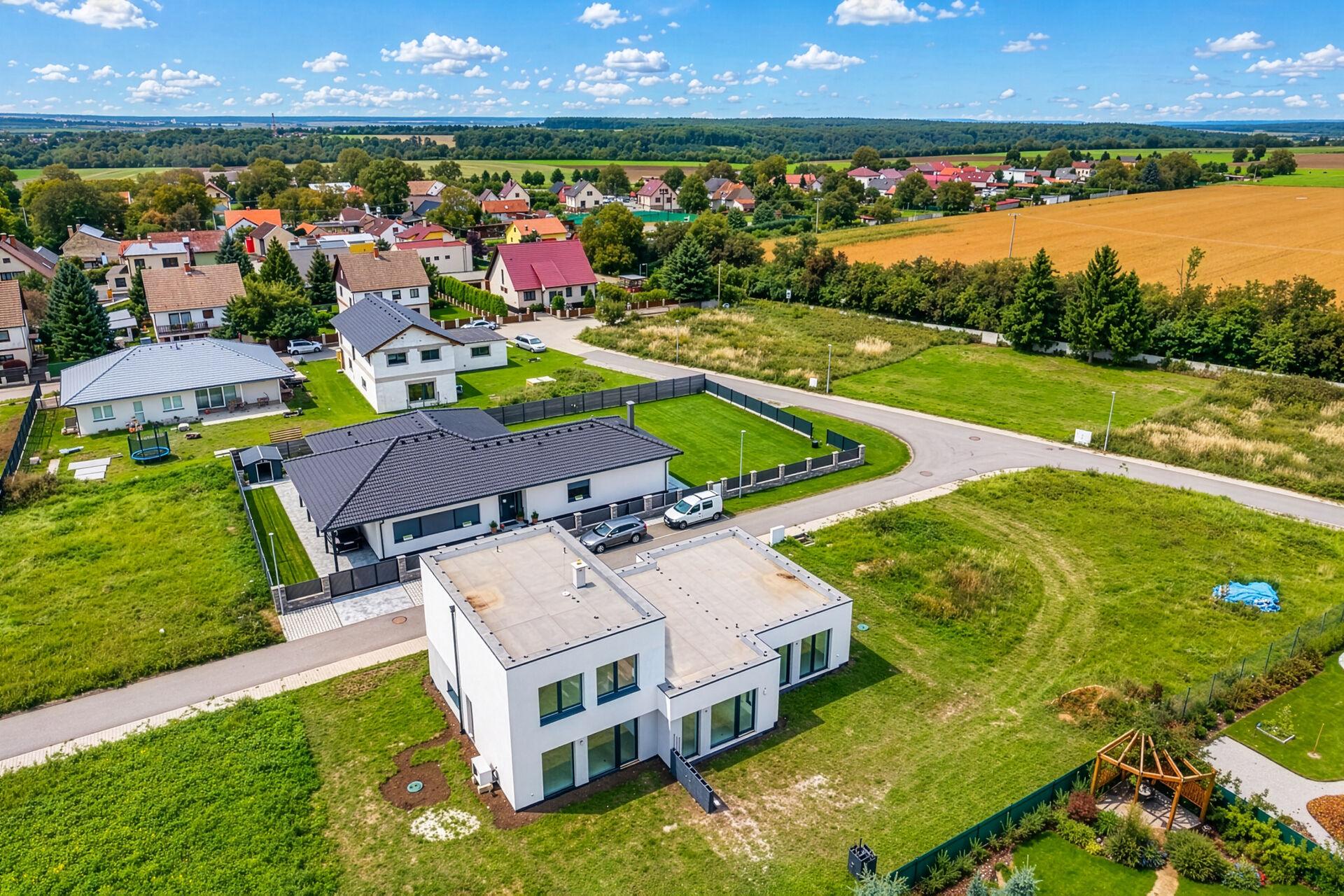 Pak vás zaujme tato jednotka v novém dvojdomě v Jizerním Vtelně. Jedná se o komfortní novostavbu typu 4+kk s užitnou plochou 114 m², která spojuje klid venkovského života s pohodlím současného standardu. Nachází se na okraji obce, obklopena zelení, a přesto jen pár minut jízdy od Mladé Boleslavi či dálnice D10.