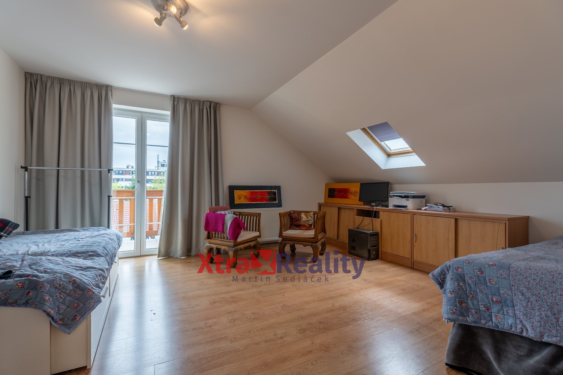 V tomto patře nalezneme šatnu, samostatné WC, koupelnu s umyvadlem, rohovou vanou a sprchovacím koutem a prostornou ložnici, ze které je vstup na zimní zahradu;. Srdcem celého domu je kuchyň propojená s jídelnou a obývacím pokojem o celkové rozloze přes 63m2. Nejen pro ranní kávu je zde k dispozici prostorný balkon s překrásným výhledem.