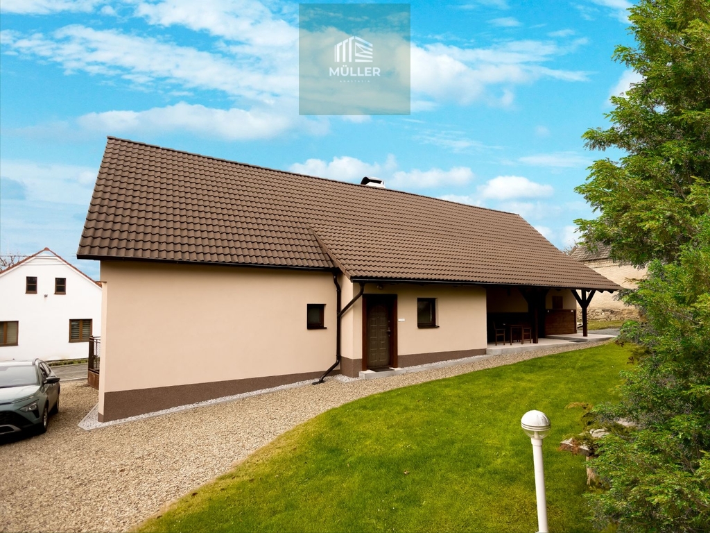 Před domem se nachází terasa vhodná pro venkovní posezení.