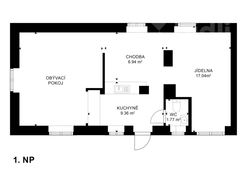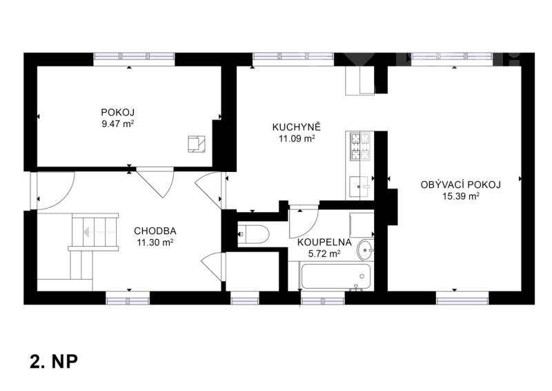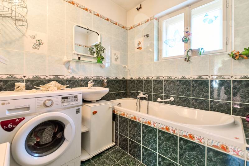 1. patro (disp. 2+1): kuchyňská linka, podlahy, koupelna s WC, vše z roku 2015, dále vstup na venkovní slunnou terasu 15 m2 odkud se otevírá výhled na zahradu plnou zeleně a klidu.