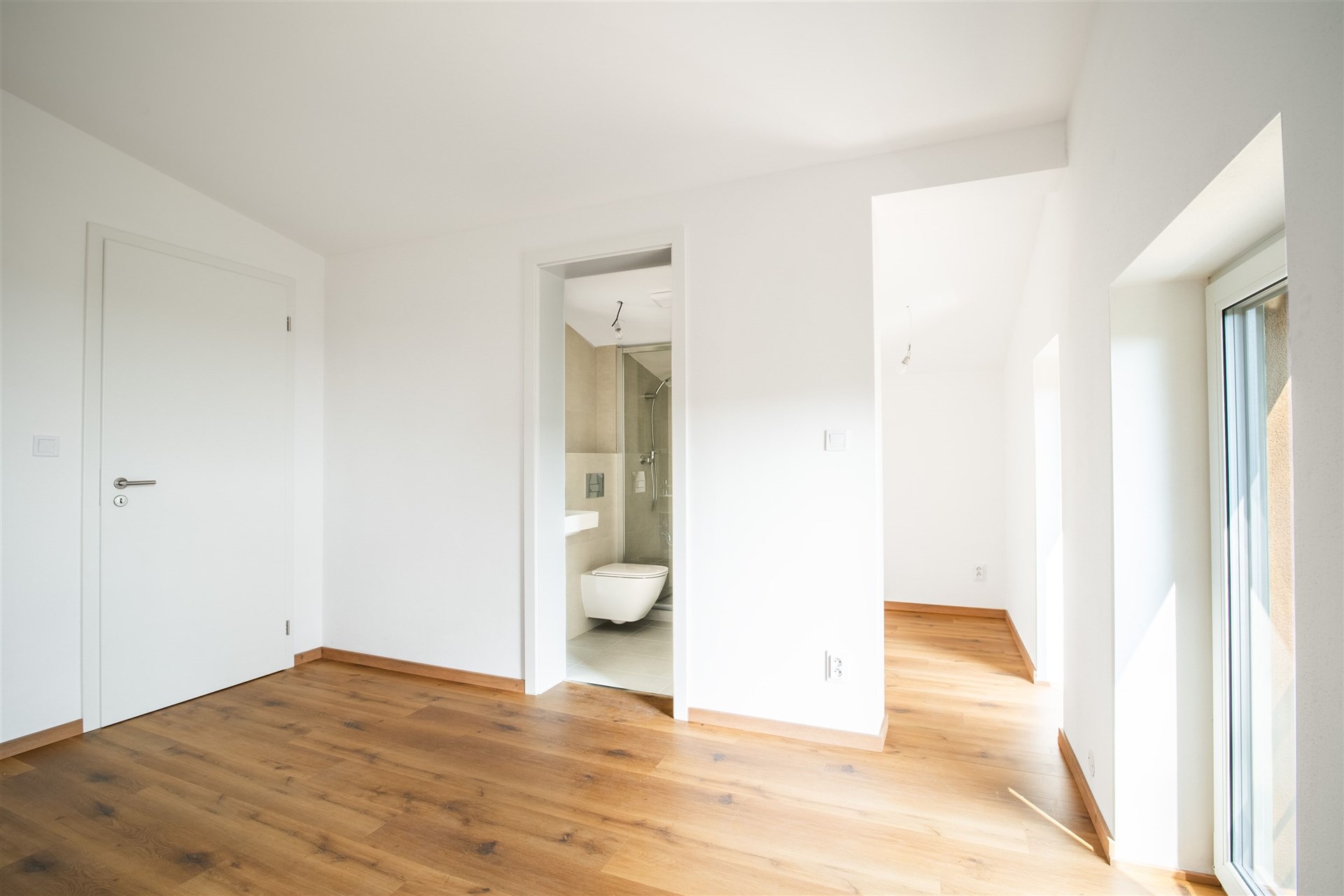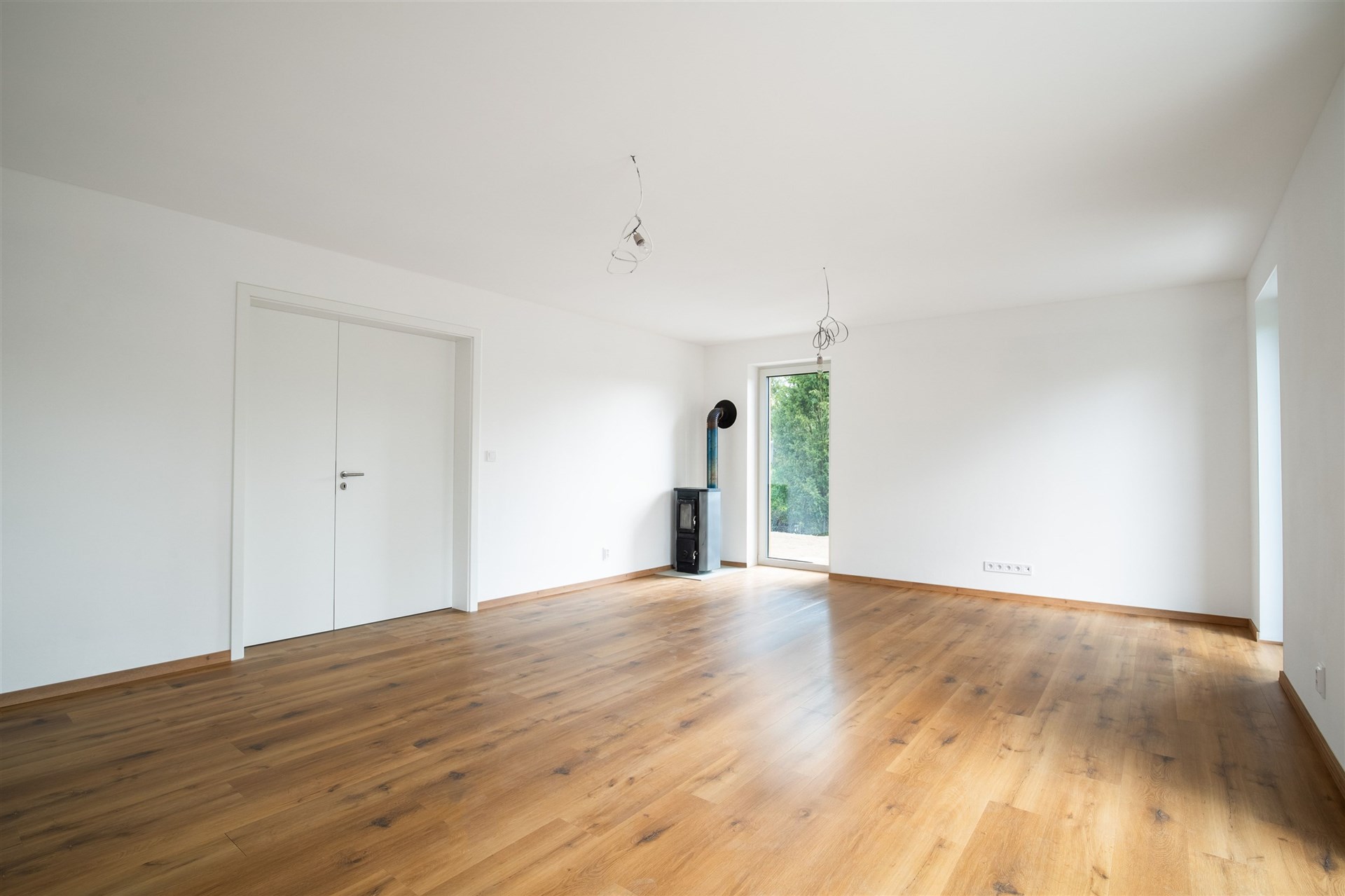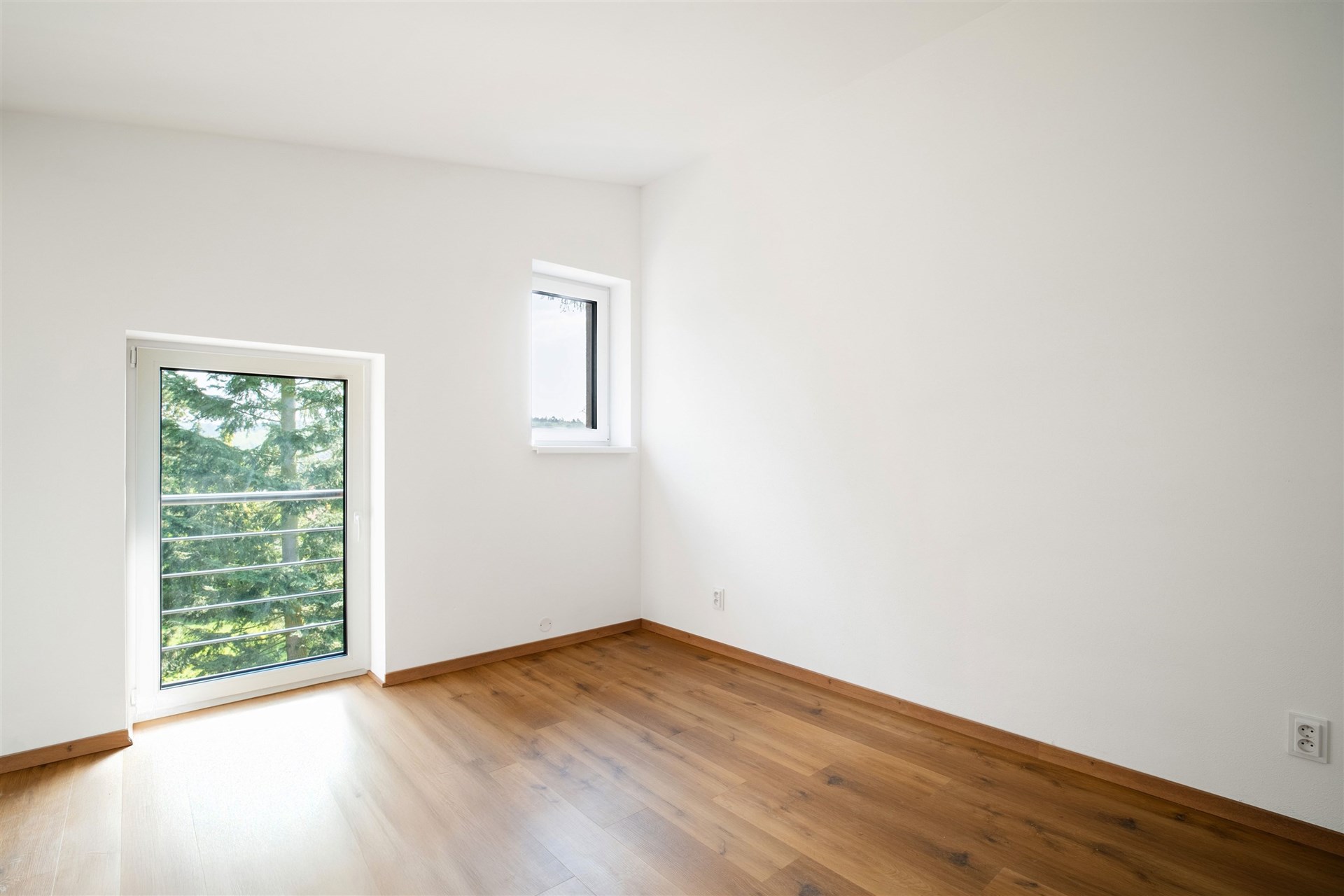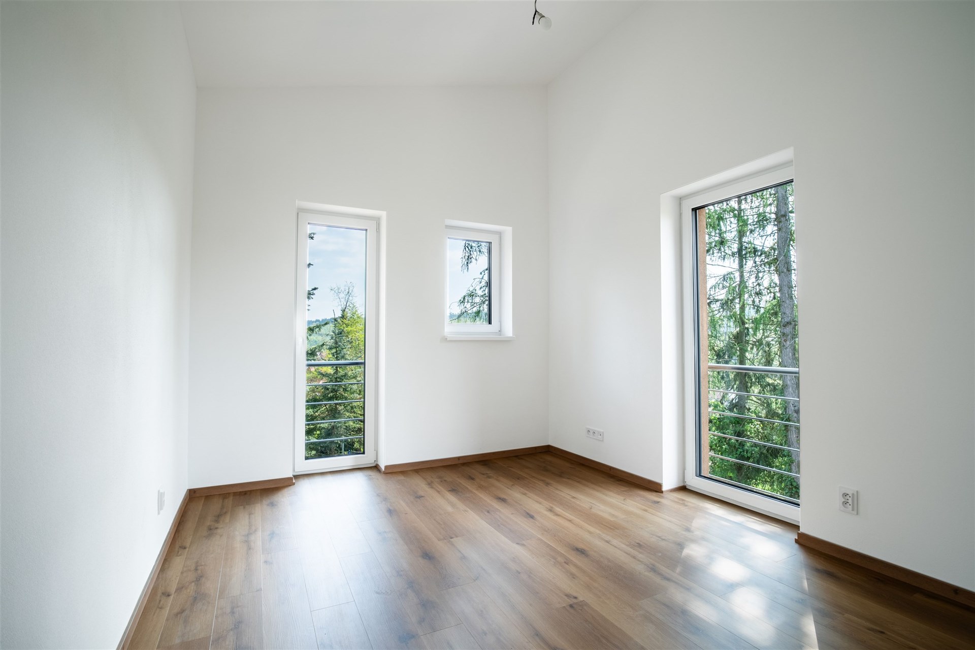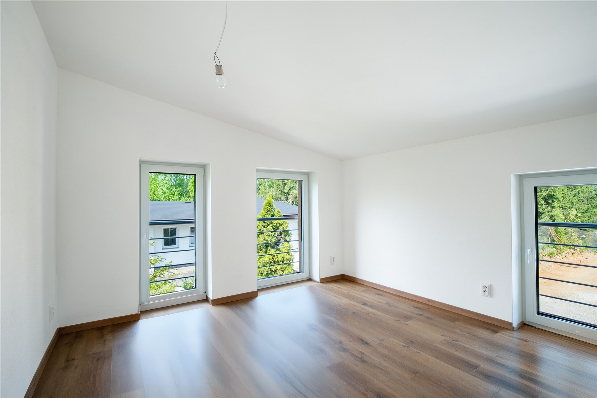 Podlahy pokryté kvalitním vinylem a dlažbou, okna s trojskly pro skvělou tepelnou a zvukovou izolaci.