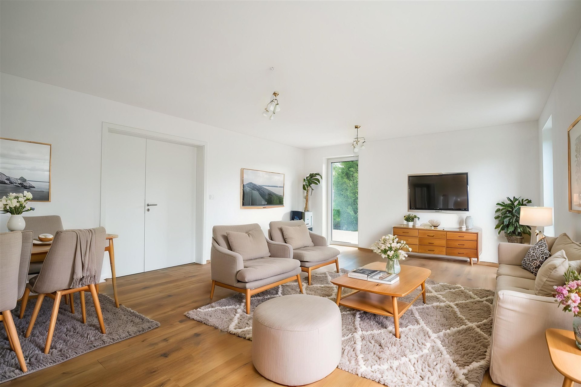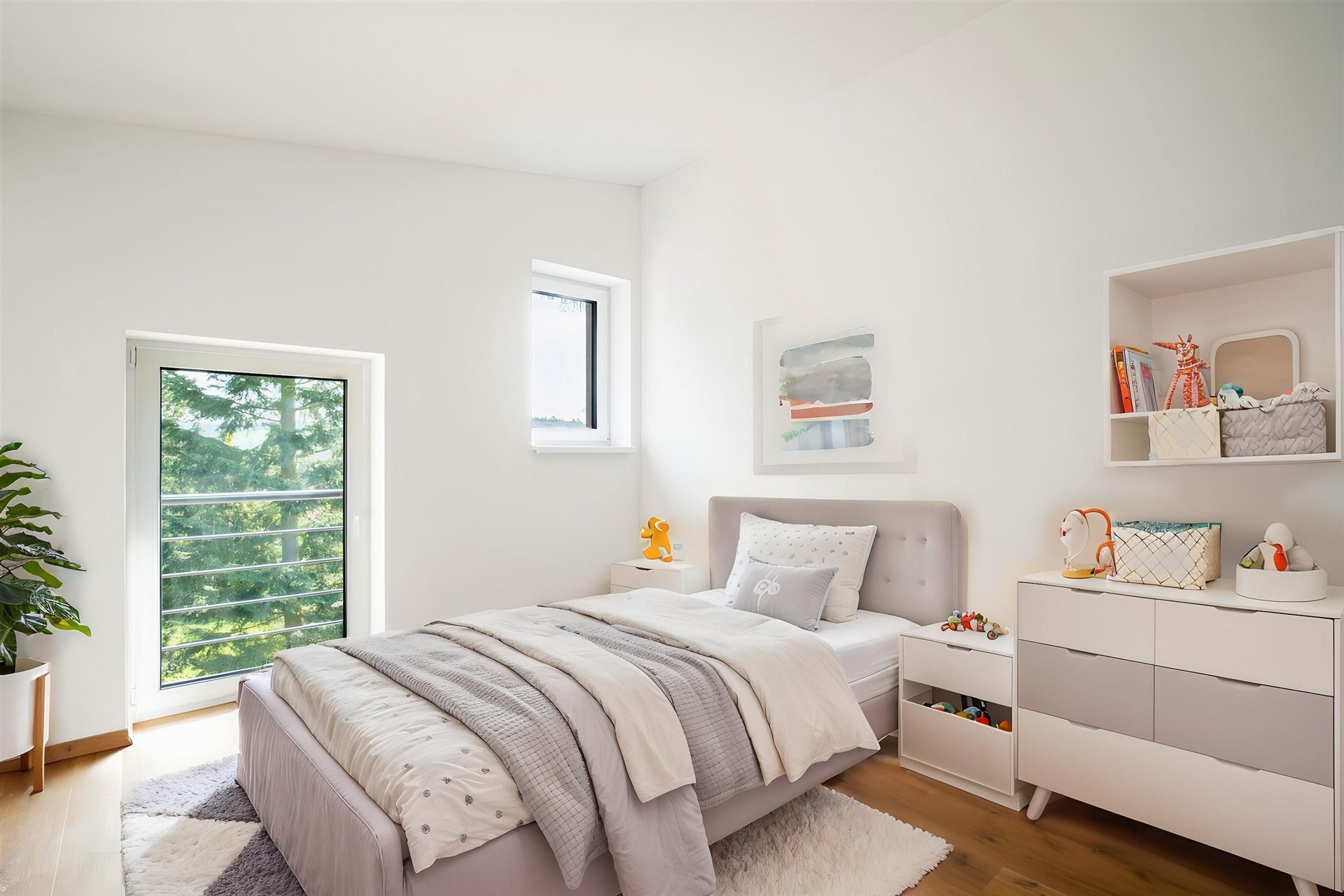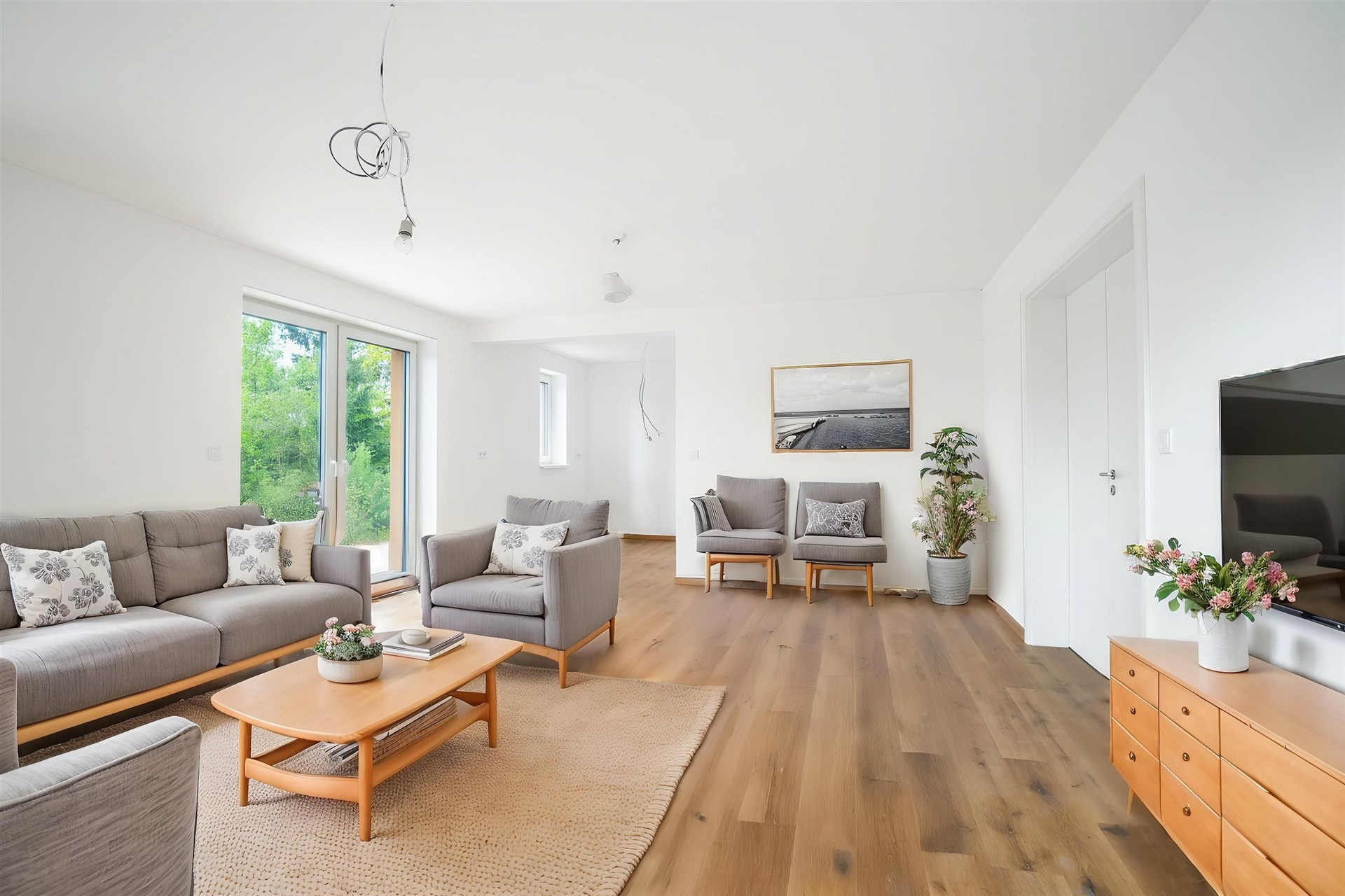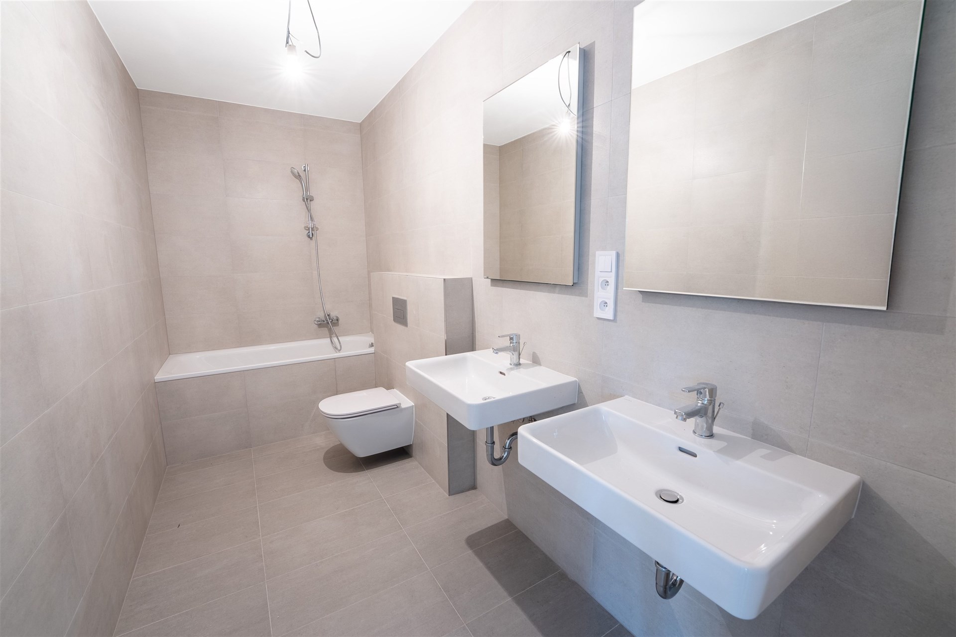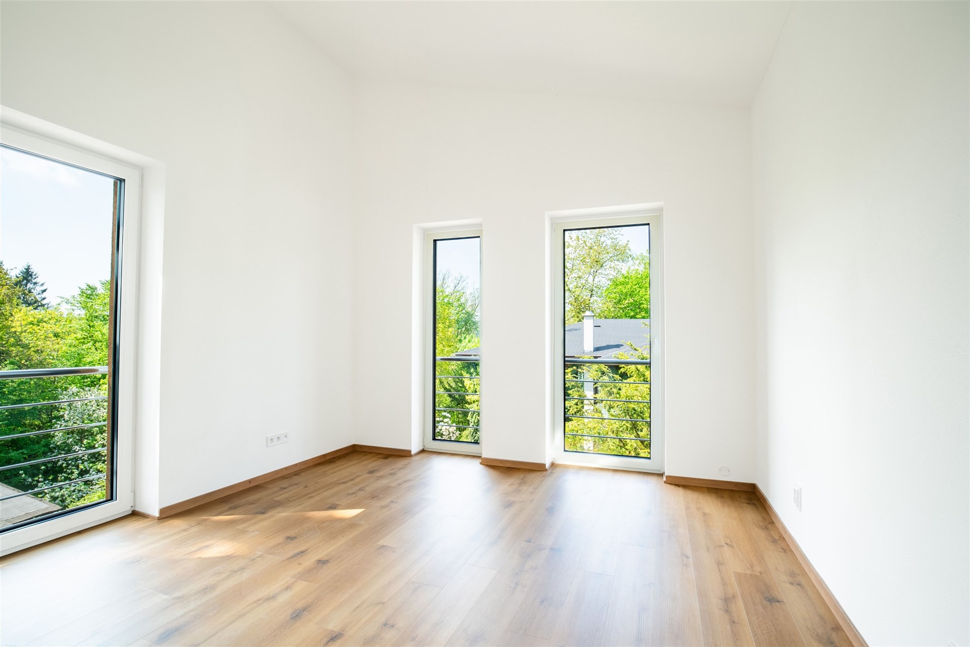Podlahy pokryté kvalitním vinylem a dlažbou, okna s trojskly pro skvělou tepelnou a zvukovou izolaci.