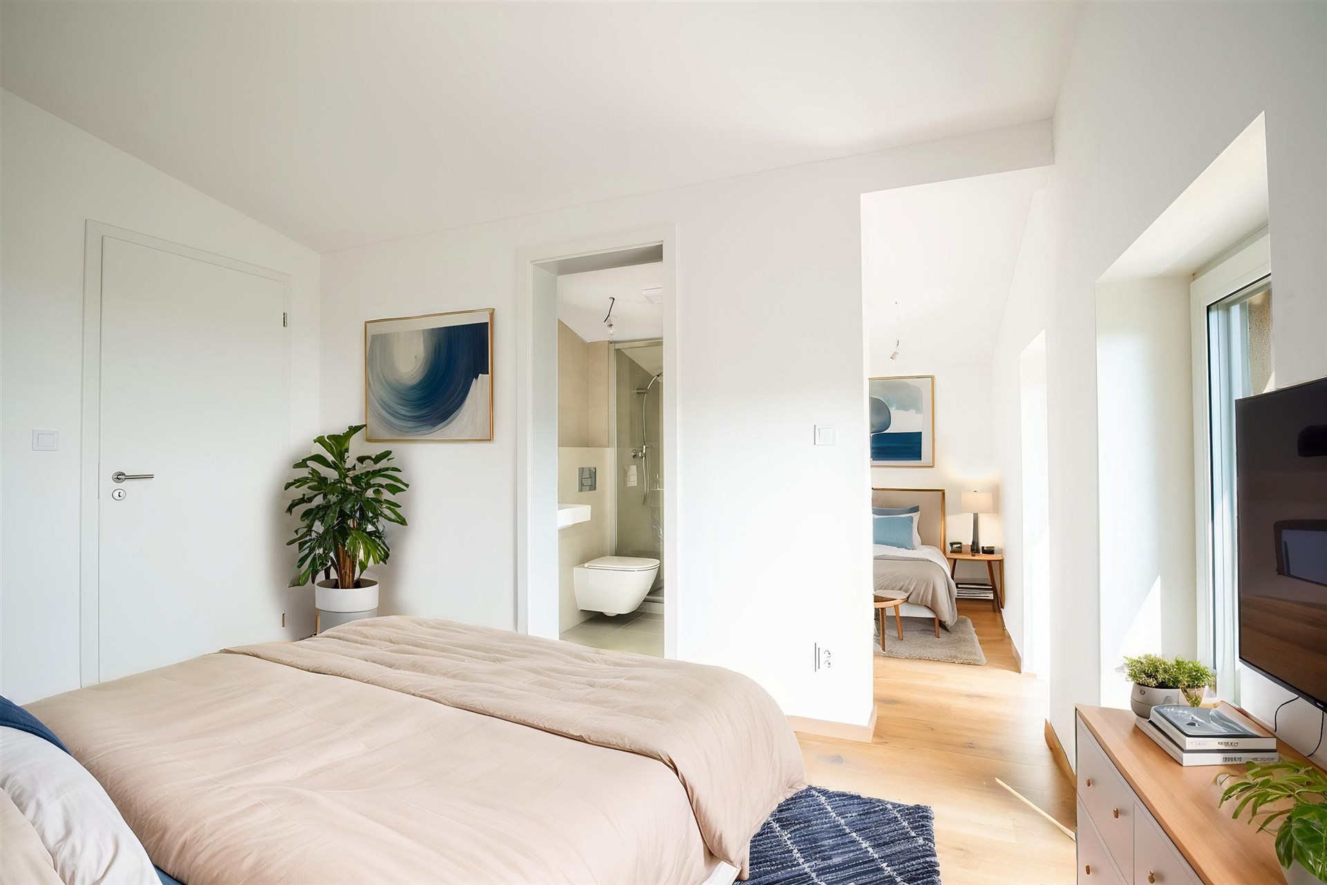 Čtyři ložnice – ideální jako rodinné pokoje, pracovny nebo pokoje pro hosty. Z toho jedna s vlastní koupelnou a toaletou.