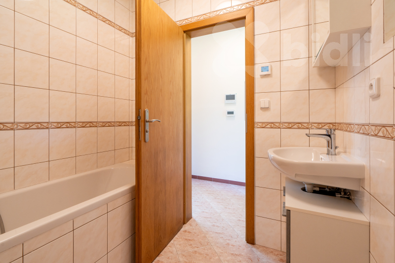 V přízemí je také toaleta a dvě technické místnosti - jedna s vodárnou, bojlerem a elektrokotlem Porotherm, druhá s pračkou.