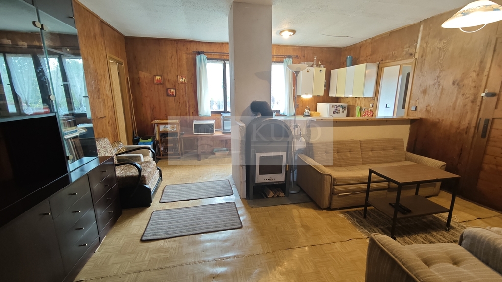 Chata s podlahovou plochu 67 m2 disponuje vstupní verandou, jídelním koutem, obývacím pokojem s kuchyňským koutem, pokojem/ložnicí, velmi prostornou koupelnou s vanou, umyvadlem a toaletou a v podkroví malou místností s možností spaní.