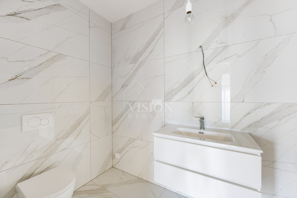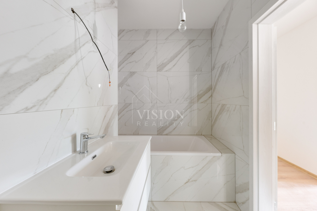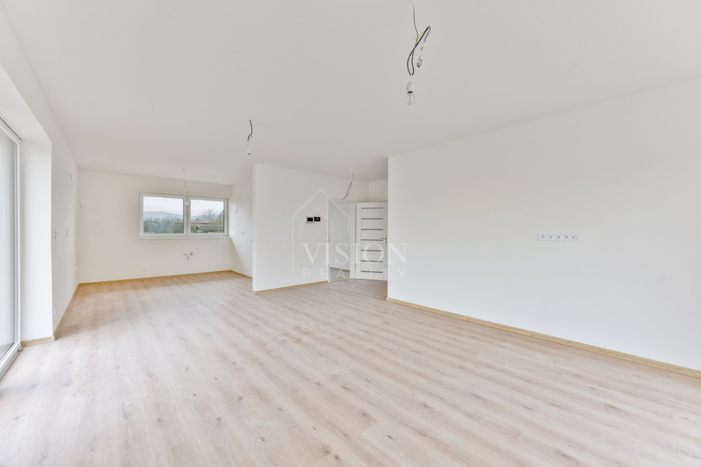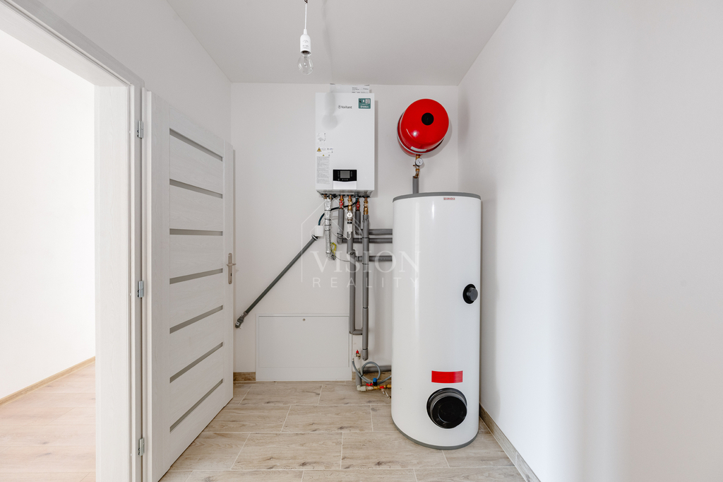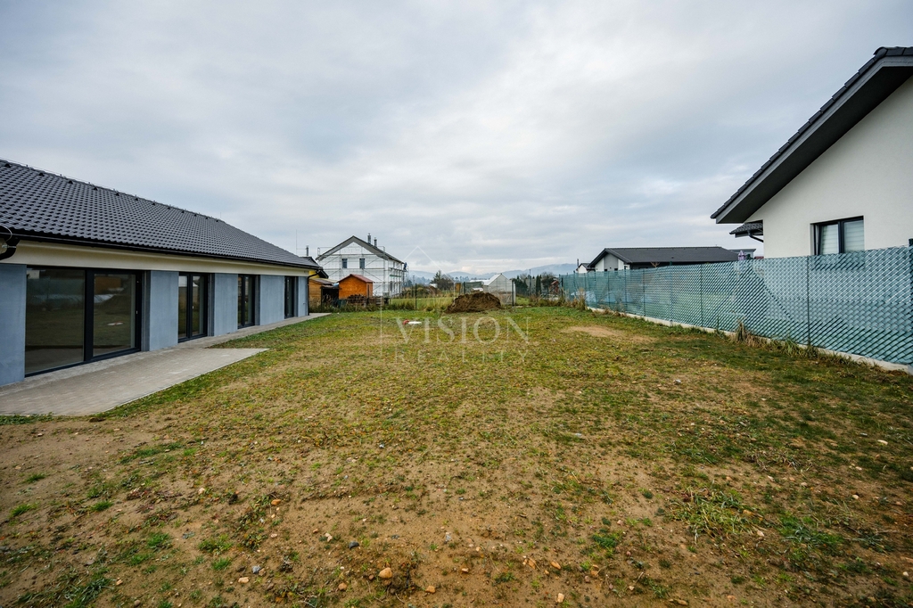 Dům o dispozici 4+kk nabízí 152 m² užitné plochy a stojí na oploceném pozemku 866 m². Z prostorné chodby můžeme vejít do garáže, což oceníme především v zimním období nebo projdeme do prostorného obývacího pokoje s kuchyňským koutem. Dále jsou zde dva pokoje a ložnice, která má i svou vlastní koupelnu. Nadstandardně velká okna zajišťují maximální prosvětlení interiéru a každý pokoj má přímý vstup na terasu a zahradu. K dispozici je další koupelna a také technická místnost, která poskytuje dostatek prostoru i jako úložný prostor.