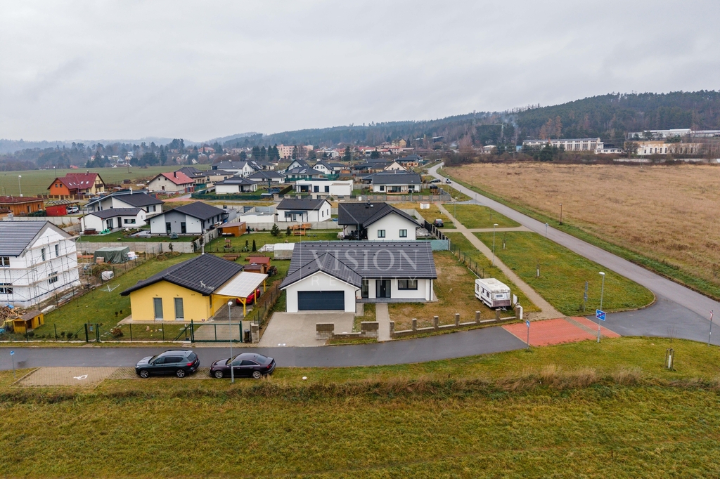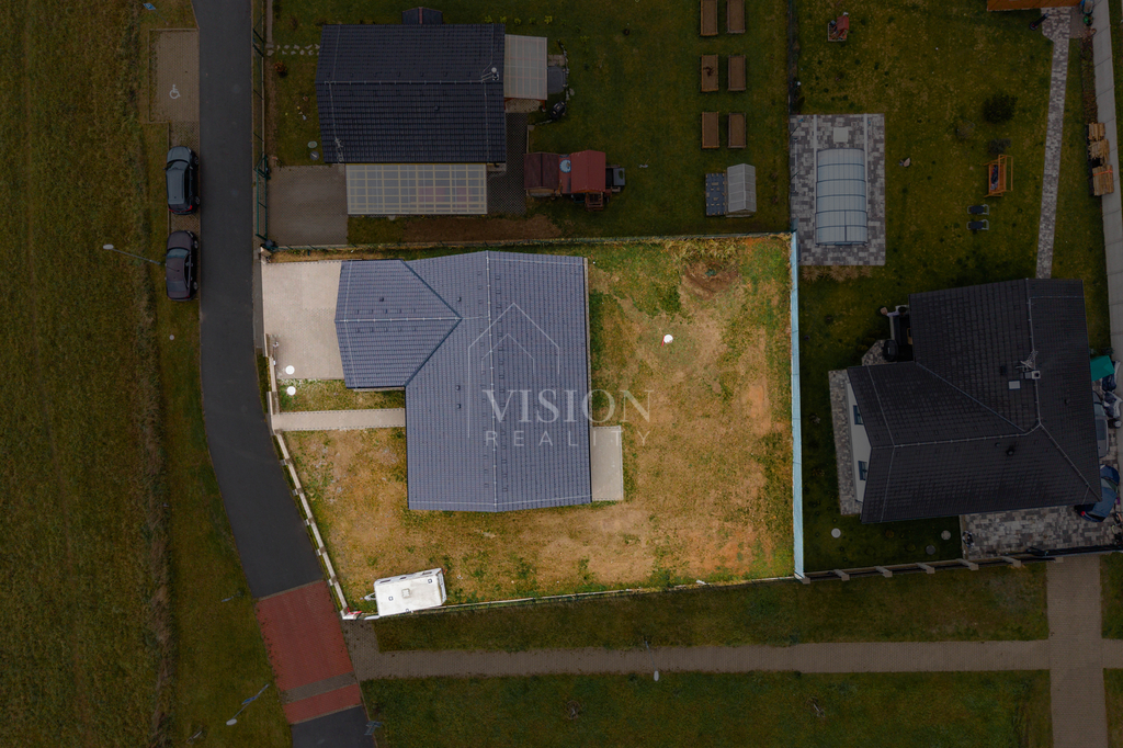 Součástí nemovitosti je garáž pro dvě auta a další venkovní stání. Za domem je dlážděná teráska pro posezení a u oken příprava na okenní rolety. Celá stavba je provedena ve vysokém standardu – kvalitní materiály, precizní zpracování, moderní technologie i prvky, které podtrhují komfort a dlouhodobou hodnotu domu.