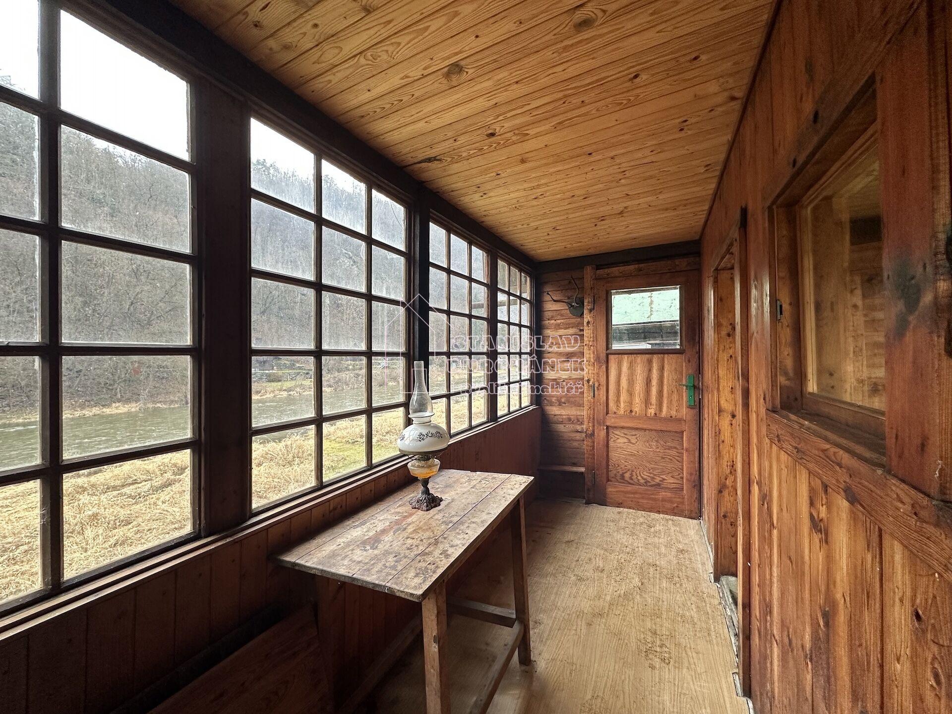 Prodej útulné chaty v první řadě u řeky Sázavy – Kamenný Přívoz, část Hostěradice
