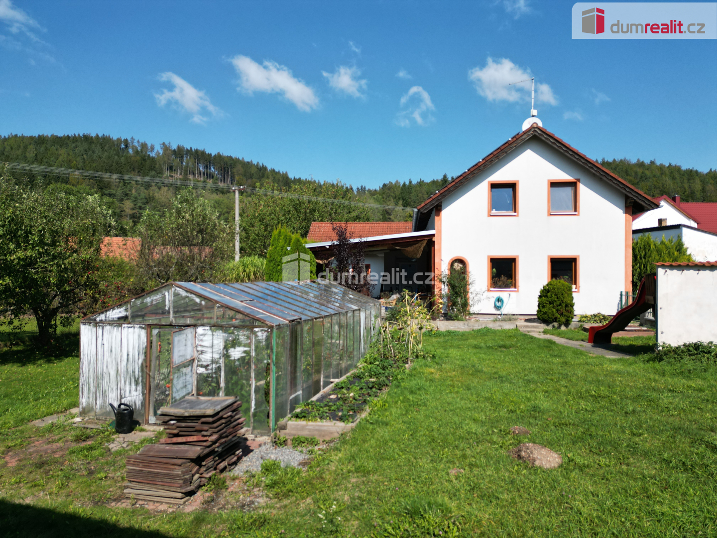Naše společnost Vám zprostředkuje prodej rodinného domu s dispozicí 4+1, se zahradou a garáží, Hradiště, Kaplice.