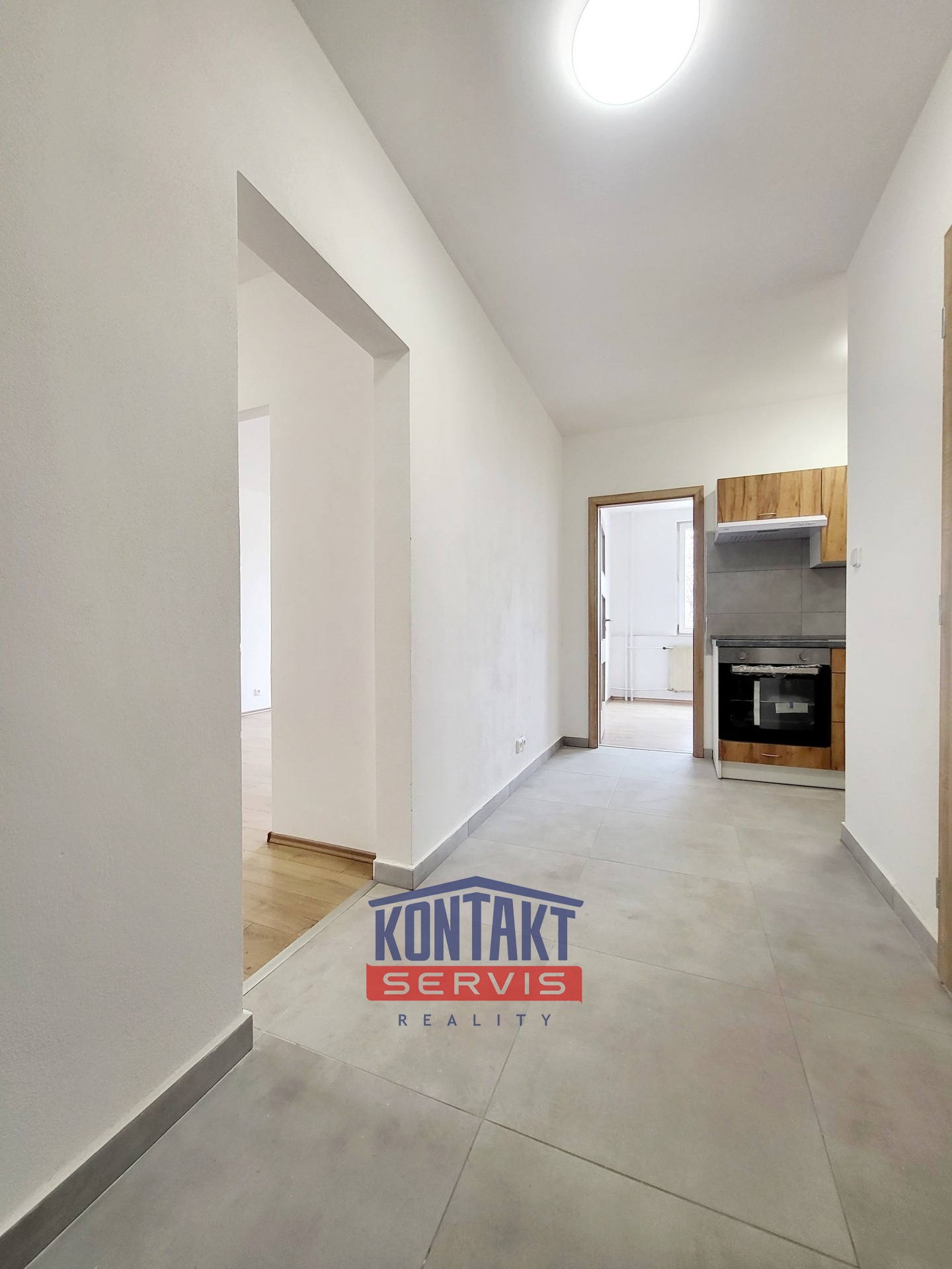 Dispozice bytu: vstupní chodba, koupelna s vanou a WC, samostatná kuchyň, prostorný obývací místnost a neprůchozí ložnice. Kuchyňský kout je vybaven spotřebiči a nabízí praktické řešení.