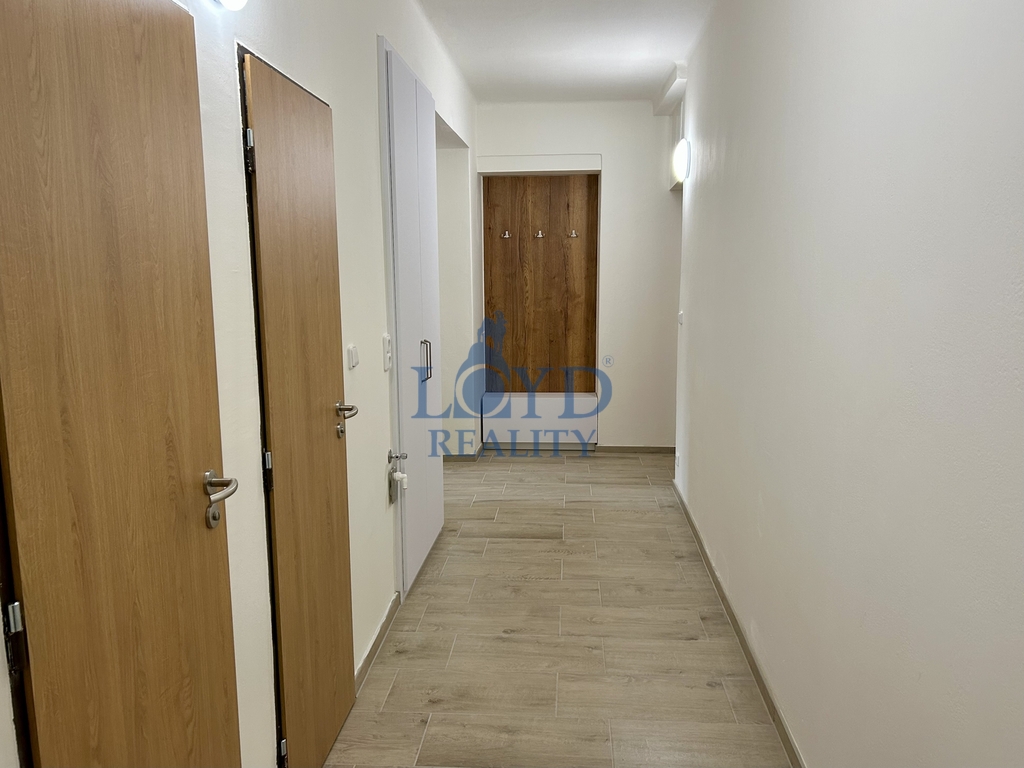 Byt je nyní nově po rekonstruci. Má velkou vstupní chodbu, kde je moderní vestavěná skříň. Koupelna a WC jsou oddělené.