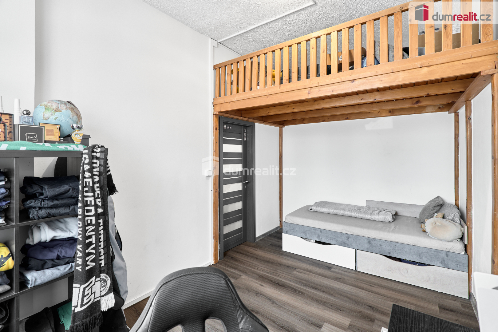 Dominantou bytu je prostorný obývací pokoj s funkčním krbem na dřevo, který nejen dotváří příjemnou atmosféru, ale bez problémů vytopí celou místnost. V dětském pokoji je prakticky řešený prostor s dřevěnou patrovou postelí na míru. Byt působí velmi útulně, zároveň nabízí dostatek místa pro rodinné bydlení.