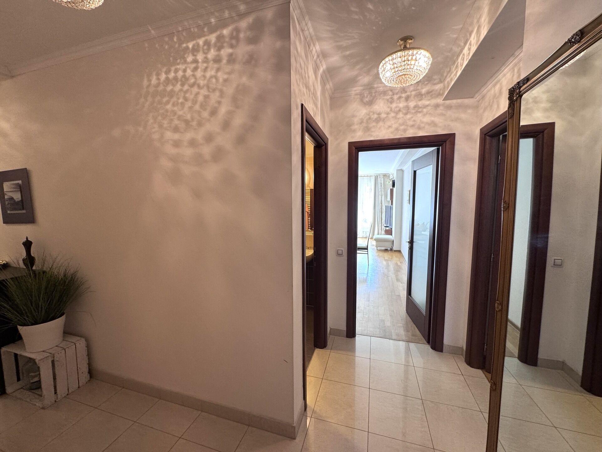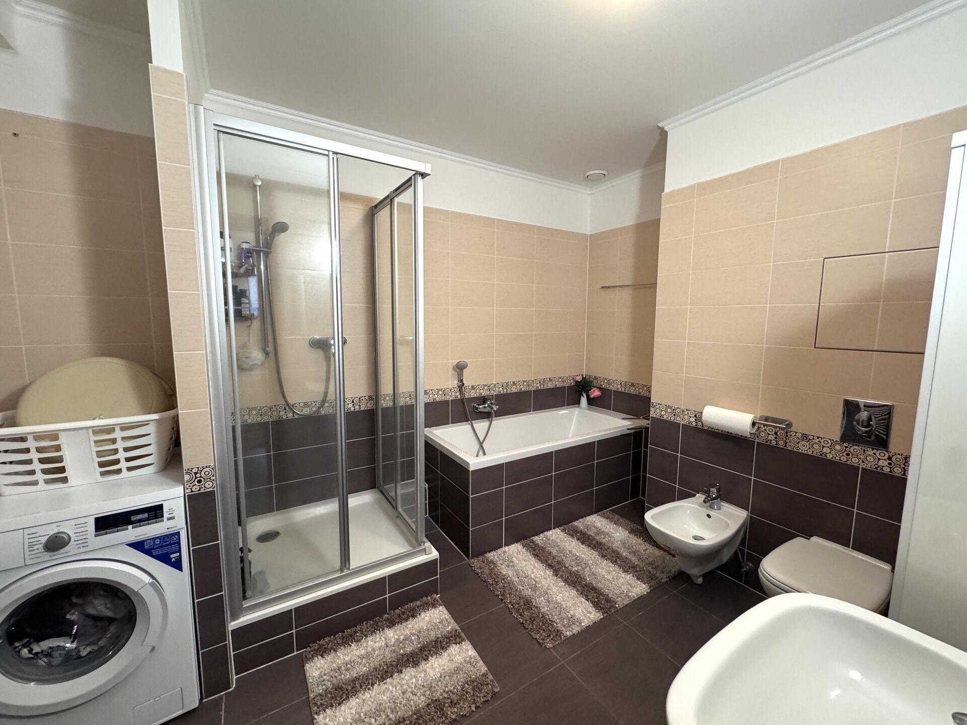 Nabízíme k prodeji byt o dispozici 3+KK centru Karlových Varu, v ulici Jateční. Celková plocha bytu činí 104,29 m2. Byt je situován v 2 nadzemním podlaží nové cihlové budovy s výtahem, postavené v roce 2009. Byt je v perfektním stavu, se prodává zařízený nábytkem. Kuchyňská linka vyhotovená na míru s vestavěnými elektrospotřebiči. Podlahová krytina: kvalitní parkéty a keramická dlažba. Dálkové topení. Byt se skládá z prostorné předsíně, obývacího pokoje s kuchyňským koutem, dvou prostorných ložnic, dvou koupelen s vanou a sprchovým koutem a WC, terasy. V ceně bytu je sklepní koje a prakovací stání v hálové garáži. V budově je k dispozici služba recepce 24 hodin denně, kamerový systém. Byt se nachází 10 minut pešky od lázeňského centra města s kolonádou a minerálními prameny. Na uzavřeném území komplexu je situované dětské hřiště. Veškerá občanská vybavenost: supermarket LIDL, autobusová zastávka, restaurace atd. v peší dostupnosti. Útulné bydlení v centru lázeňského města. Vřelé doporučujeme prohlídku tohoto atraktivního bytu.