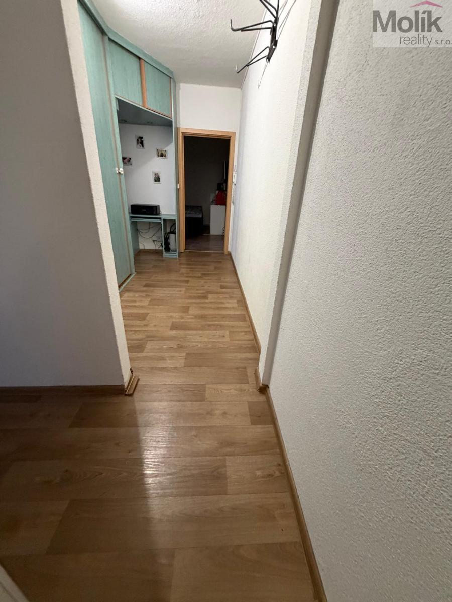 Byt po rekonstrukci (zděné jádro, kuchyň, linoleum).