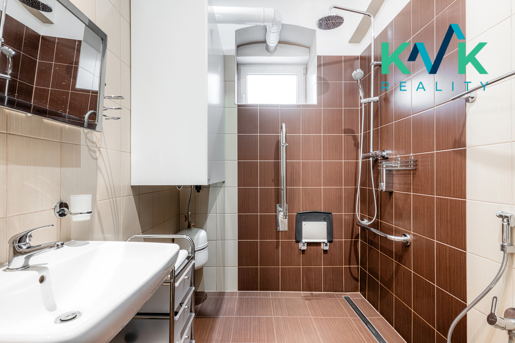 Jeden vchod je bezbariérový, stejně jako koupelna, a to s přímým přístupem výtahem.