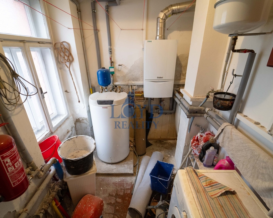 Čtyři nadzemní podlaží, dvě terasy, sklep a půda. Přízemní byt je aktuálně využit jako nebytový prostor, v patrech vždy byt přes celé patro, celkem čtyři byty. Terasy u bytu v přízemí a 1. patře, zbylé byty s malými balkóny. Plynová kotelna v přízemí pro celý dům.