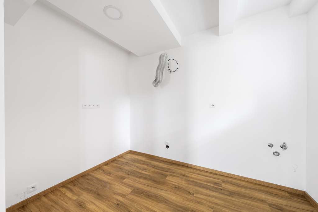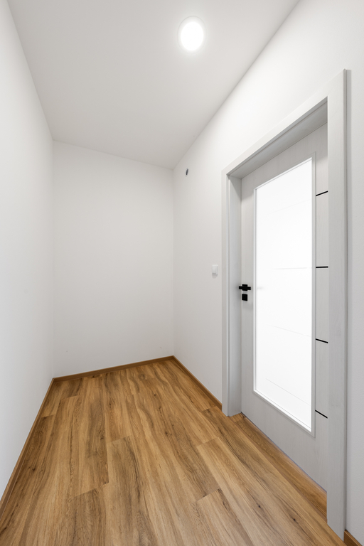 Jednotka je dokončena v nadstandardním provedení, které zahrnuje kompletní vnitřní rozvody a instalace, plastová okna s izolačním trojsklem doplněná o venkovní žaluzie, podlahové teplovodní vytápění v celém prostoru, v koupelně navíc rozšířené o topný žebřík. Interiér doplňují moderní interiérové dveře se zárubněmi, vinylové podlahy v kombinaci s keramickou dlažbou, stejně jako obklady i sanita od renomovaných výrobců. Pro instalaci kuchyňské linky je připravena kompletní přípojka elektřiny, vody a odpadu. Absence klasických radiátorů šetří prostor a umožňuje variabilnější uspořádání vybavení. Teplo i teplá voda jsou dodávány ústředně, přičemž spotřeba je měřena samostatně pro každou jednotku.
