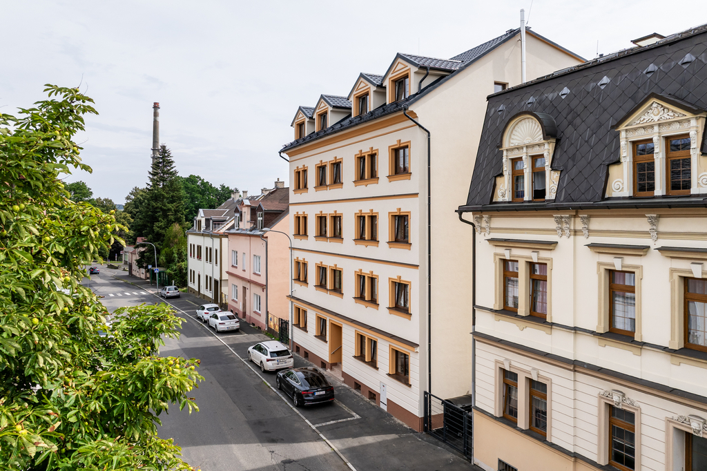 K prodeji nabízíme zcela novou jednotku 3+kk (89 m2) s vlastním parkovacím stáním v ceně, situovanou v klidné části Karlových Varů v Bohaticích, ulice U Trati. Jednotka je oficiálně umístěna v 1. podzemním podlaží energeticky úsporné budovy (třída C), avšak díky poloze budovy ve svahu se nachází z větší části nad úrovní terénu, tedy ve výšce odpovídající běžně 1. nadzemnímu podlaží. Jedná se o novou, dosud neužívanou jednotku, která je aktuálně zkolaudována jako byt, nicméně změnou užívání ji lze upravit na kancelářské prostory.