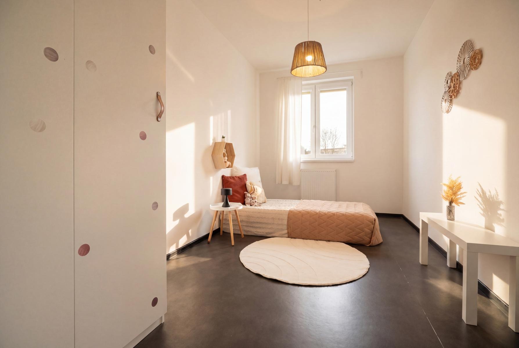Byt dále nabízí ložnici a dva samostatné pokoje, které mohou sloužit jako dětské pokoje, pracovna či pokoj pro hosty. Samozřejmostí je moderně řešená koupelna a samostatná toaleta. Nadstandardní provedení interiérových dveří i koupelny podtrhuje celkový kvalitní charakter nemovitosti.