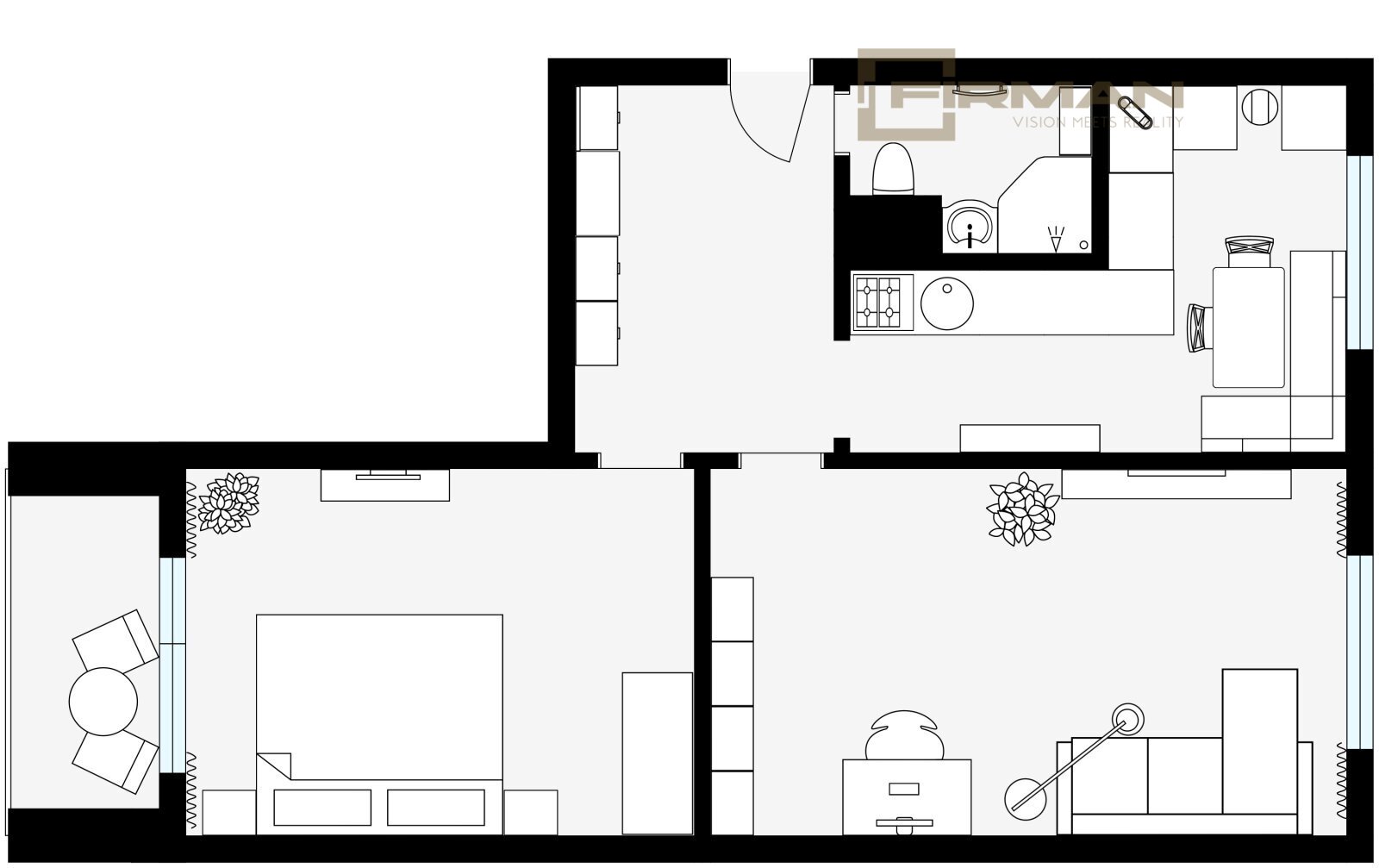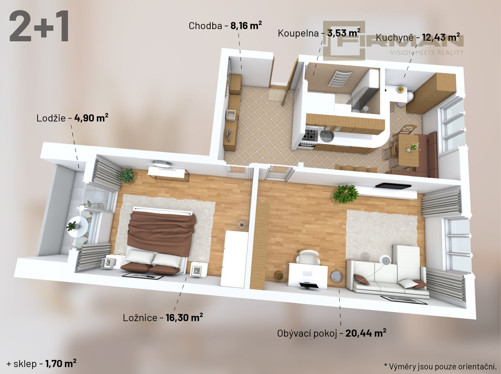 Dispozice bytu je promyšlená a funkční - samostatný obývací pokoj, ložnice s lodžií a kuchyně vytvářejí prostor, kde máte dostatek místa pro každodenní život i návštěvy přátel. V bytě vládne příjemná atmosféra a světlo, které prostor opticky zvětšuje a dodává mu pocit domova hned od prvního okamžiku.