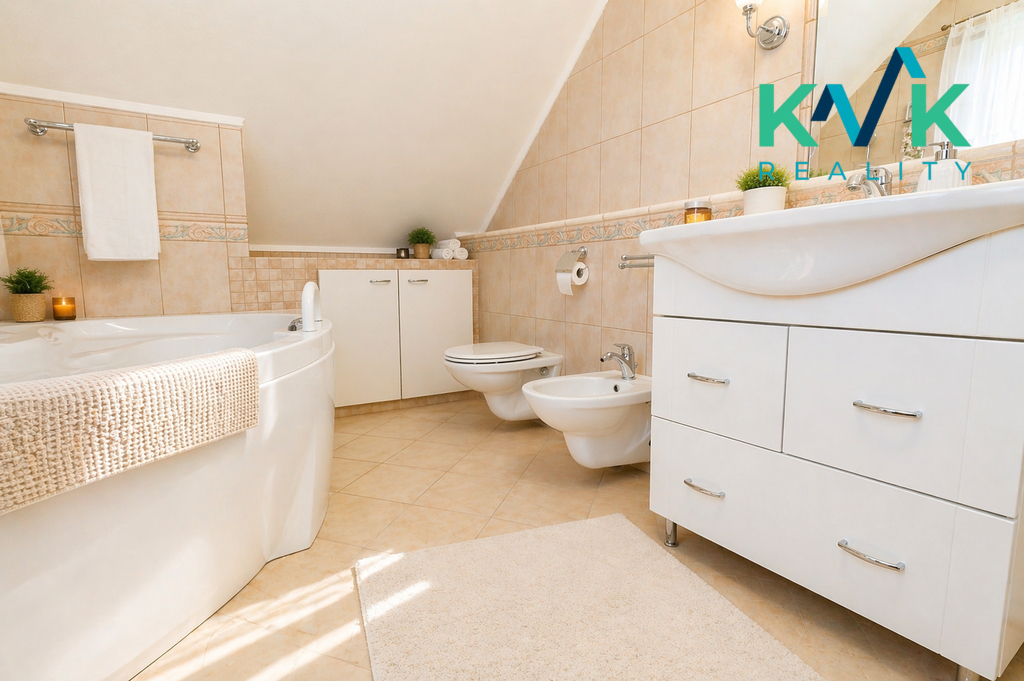koupelna s vanou, bidetem, umyvadlem a WC