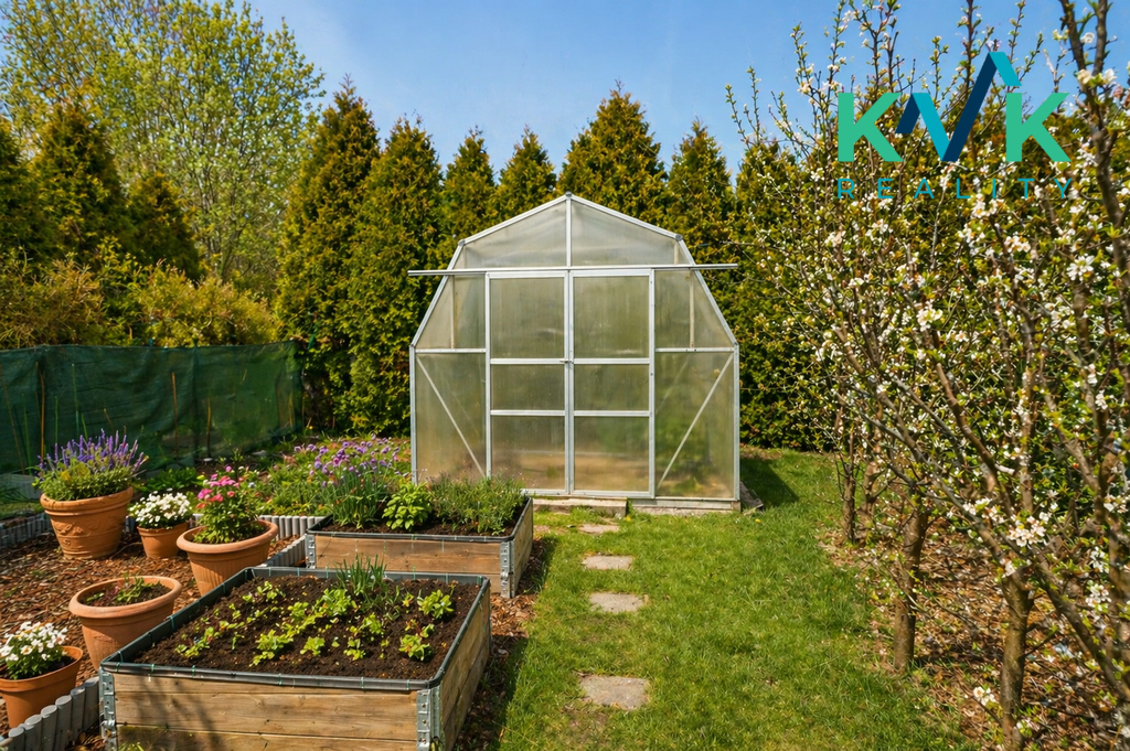 Zahrada o výměře 907 m² nabízí dostatek prostoru pro relaxaci, zahradničení i rodinné aktivity.
