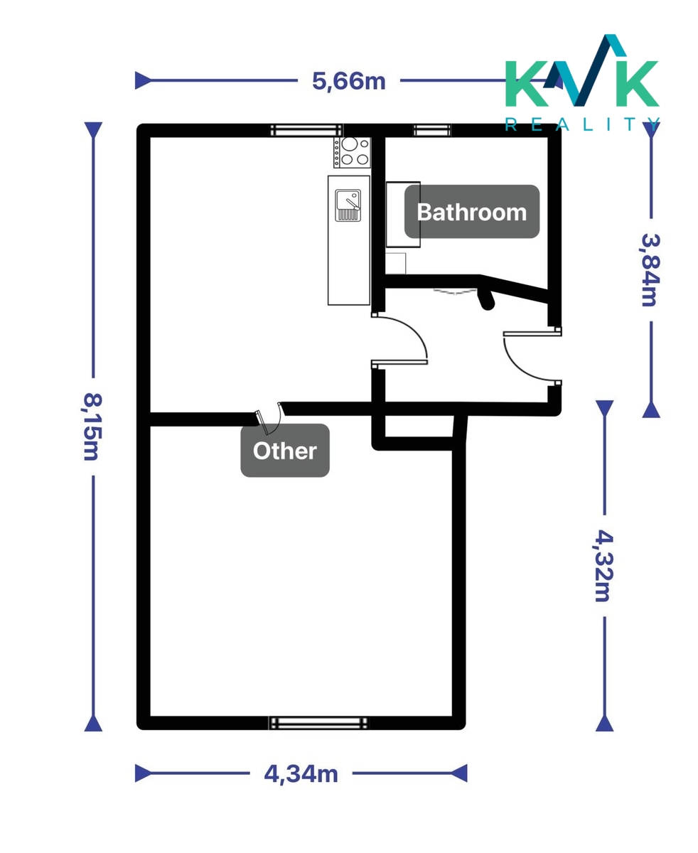 Interiér bytu je navržen tak, aby nabídl slušný komfort. Kuchyňská část obsahuje moderní kuchyňskou linku s vestavnou troubou na pečení, sporákem a digestoří, což zajistí základní komfort bydlení. Podlahy v pokoji a kuchyni jsou pokryty plovoucími podlahami, které dodávají prostorům útulný a moderní vzhled. Koupelna je vybavena sprchovým koutem a toaletou, přičemž podlaha v koupelně je pokryta keramickou dlažbou, což zaručuje snadnou údržbu.