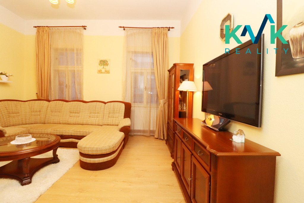 Nabízíme k pronájmu světlý a prostorný byt 2+1 o výměře 55 m² se zařízením, situovaný ve 2. patře cihlového domu v klidné části Karlových Varů, ul. Kolmá.
