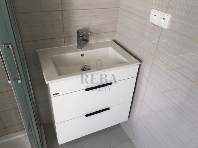 Byt je částečně zařízený, a to včetně kuchyňské linky a pračky. Koupelna je vybavena sprchovým koutem.