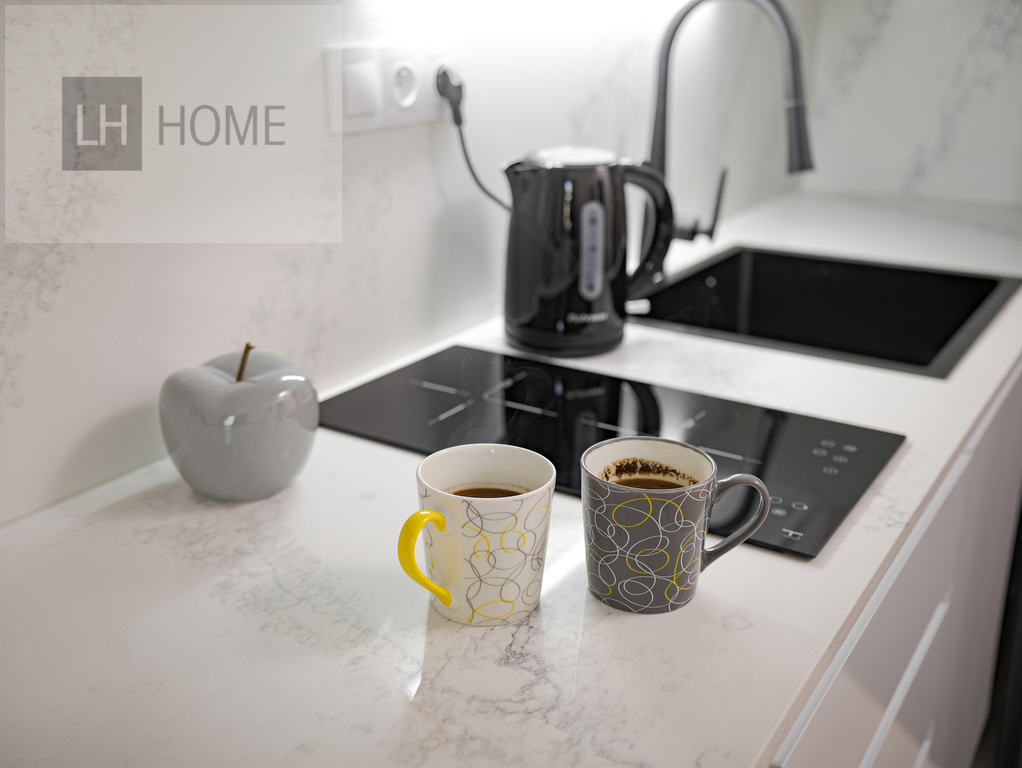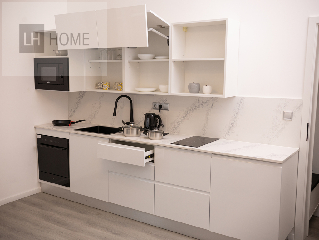 moderní kuchyňský kout s vestavěnými spotřebiči,