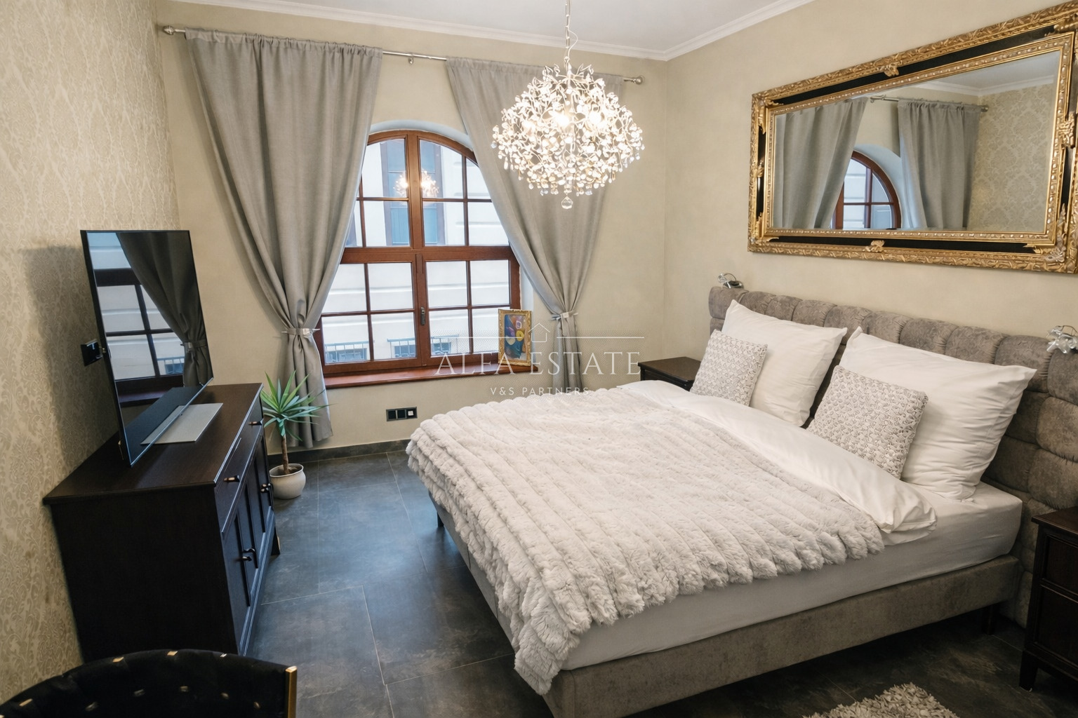 Na obytný prostor plynule navazuje stylová a prostorná ložnice, která nabízí klidné zázemí pro odpočinek a je vybavena kvalitním lůžkem pro maximální pohodlí.