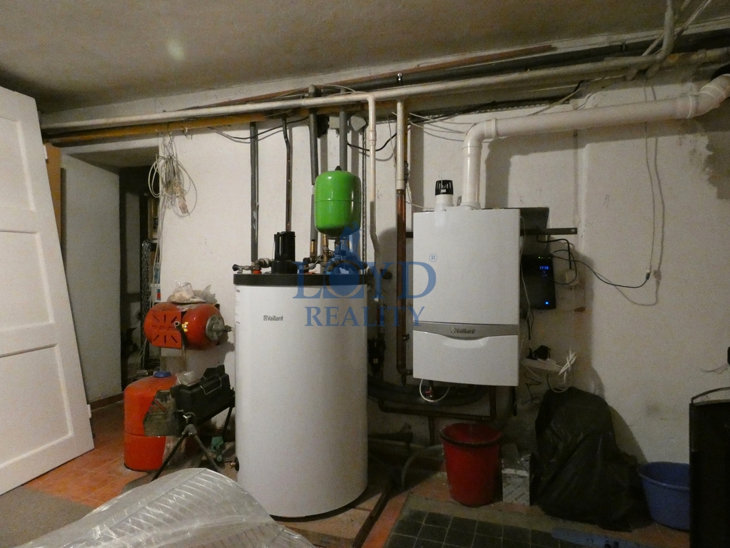 Plynový kotel v suterénu pro celý dům, vytápění a ohřev vody. Kompletní inženýrské sítě. Rok výstavby 1931, zásadní rekonstrukce po roce 2002 – zateplení fasády a plastová okna, střecha a podkroví 2010, nový plynový kotel 2017.