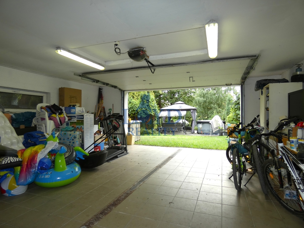 Dvojgaráž 6,3 x 6,0 metru se širokými vraty v přístavbě se samostatným vstupem, další místa před garáží nebo podél domu na ulici U Jezírka.