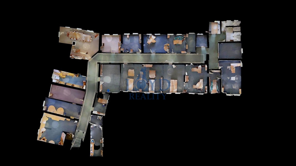 Soubor kanceláří v oddělené části budovy pod uzavřením, možný vstup na čip.
