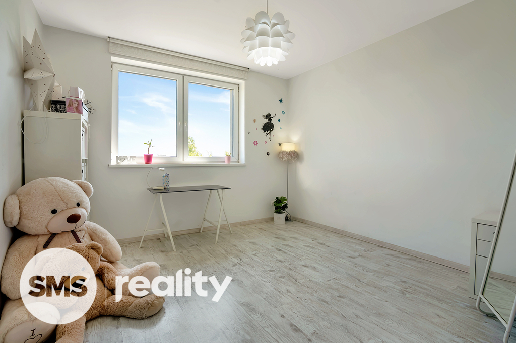 V patře jsou tři samostatné pokoje (ložnice a dva dětské), koupelna a dostatek úložných prostor. Součástí domu je také technické zázemí a garáž, která je aktuálně využívána jako sklad. Parkování je možné přímo na pozemku, který pojme i více vozidel.