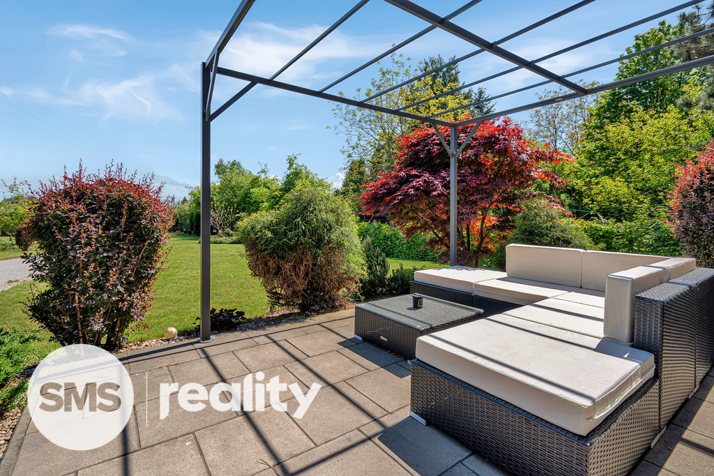 Dům je napojen na obecní vodovod a kanalizaci, vytápění zajišťuje elektrokotel s podlahovým topením. Celková výměra pozemku (mimo zastavěnou plochu) činí 1 724 m². Zahrada je pečlivě udržovaná a nabízí prostor pro odpočinek i další úpravy dle přání nového majitele. Vjezd na pozemek je zajištěn elektrickou bránou a doprovázen okrasnými dřevinami.