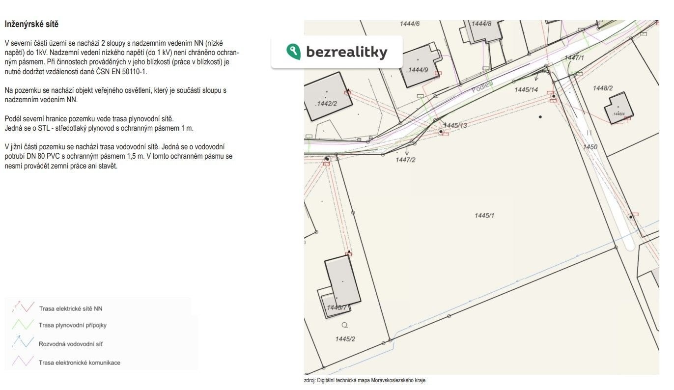 Výhodou pozemků je snadný přístup k inženýrským sítím - voda, elektřina i plyn přímo na pozemku či v jeho bezprostřední blízkosti.